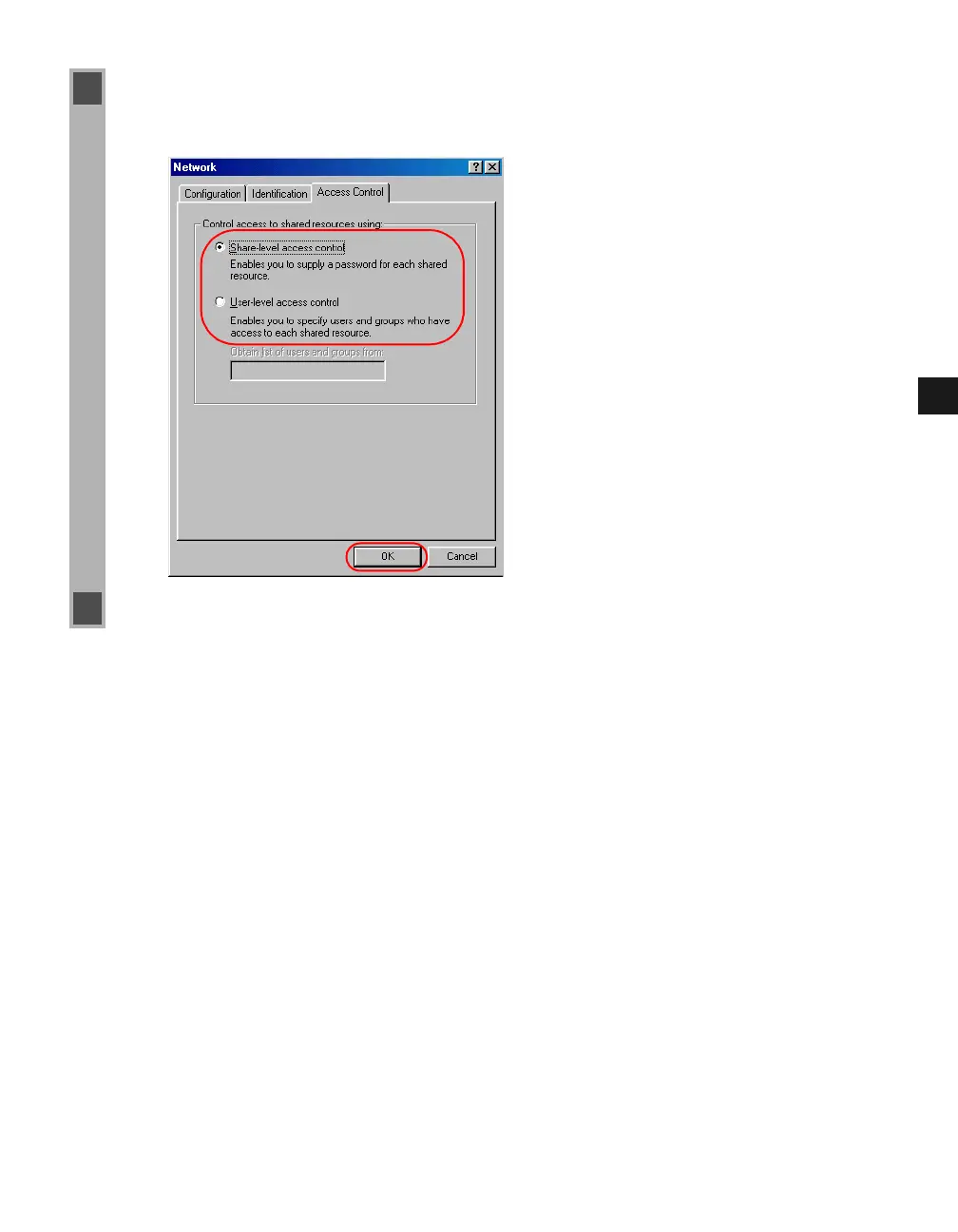 6 Select the Access Control tab check either Share-level Access Control or User-level