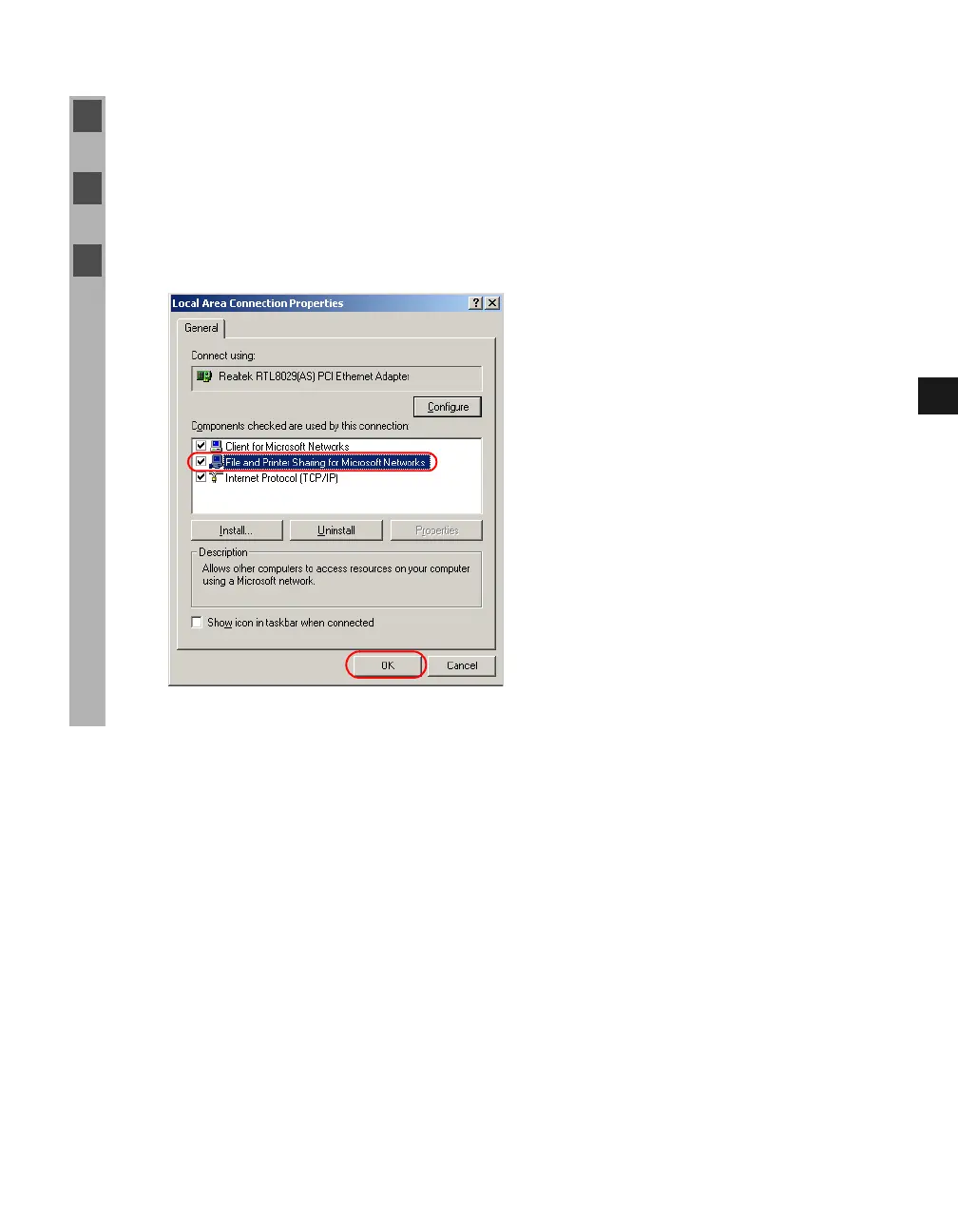 3 Select File and Printer Sharing for Microsoft Networks click OK.