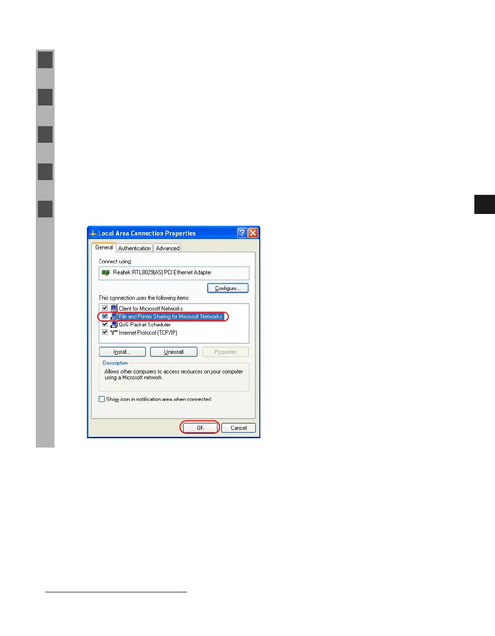 5 Select File and Printer Sharing for Microsoft Networks click OK.