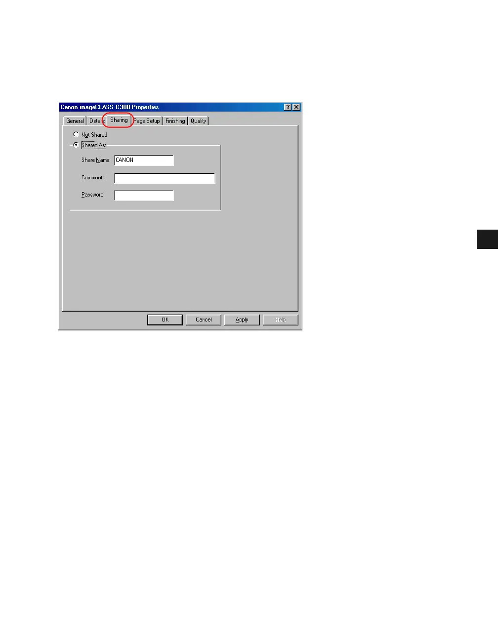 Specifies the printer-sharing settings. This tab is available only when file and printer sharing is