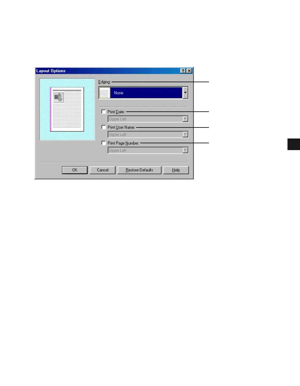 box. This dialog box allows you to print pages with a page frame, header, and footer. This