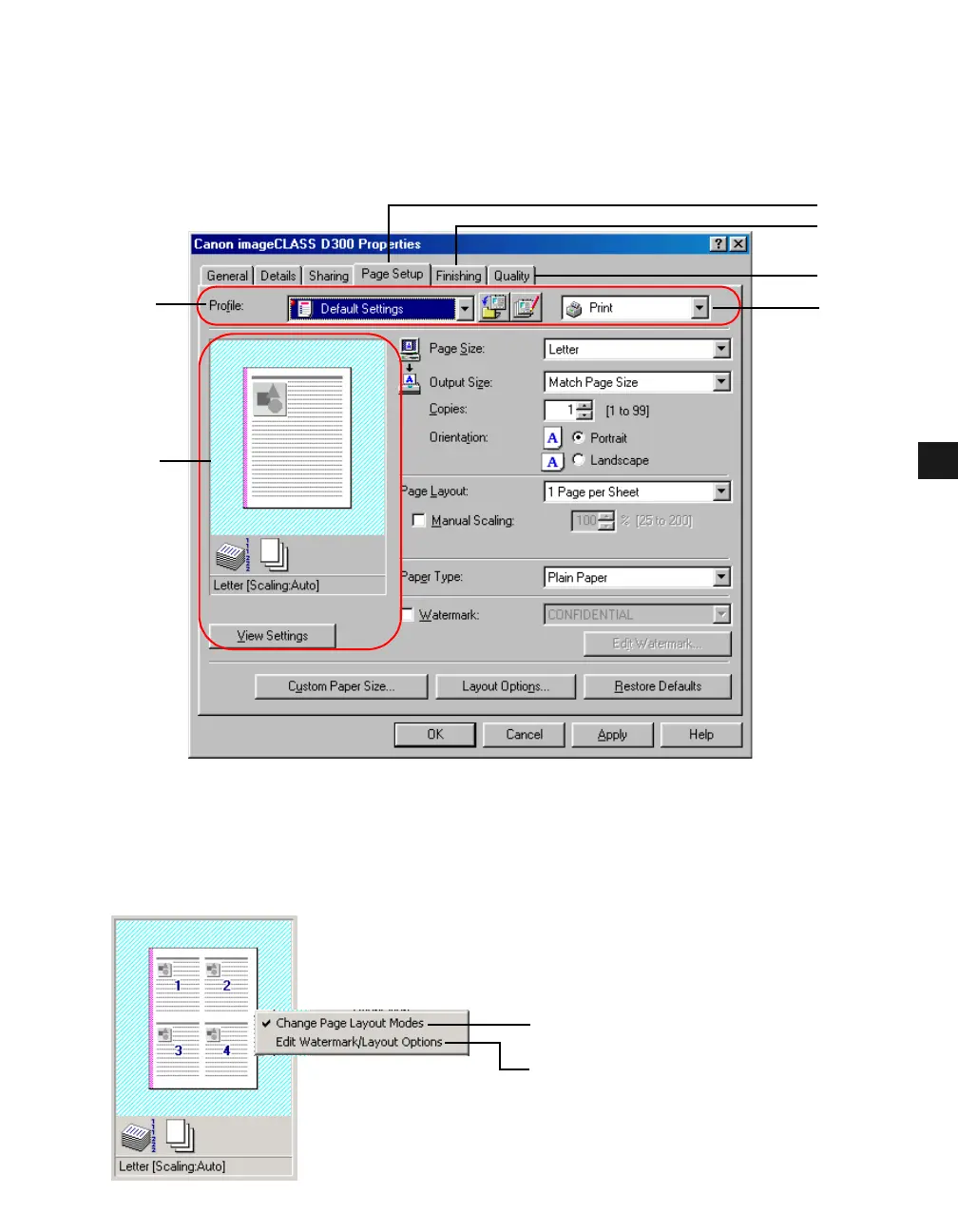 (4) Profile lets you select one of the registered profiles from the drop-down list. The preview