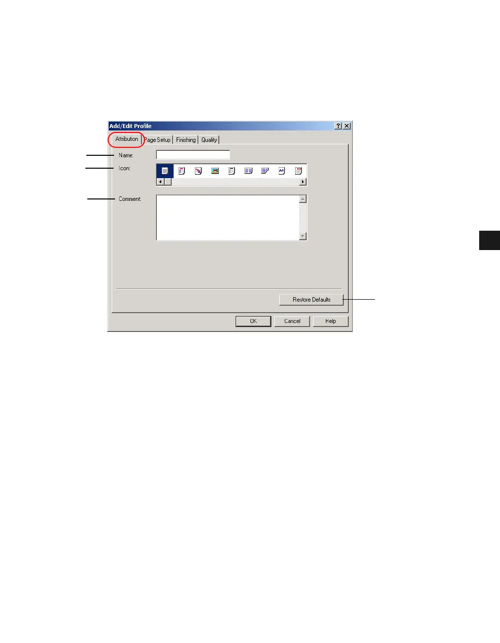 (2) Icon lets you select an icon to represent the new profile, or change the icon of the existing
