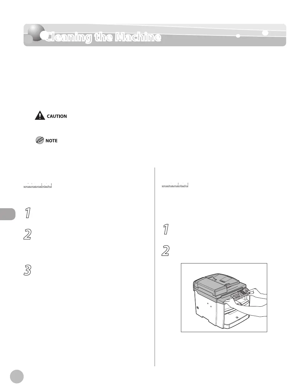 Never use volatile liquids such as thinners, benzene, acetone, or any other chemical cleaner to clean the machine. These can