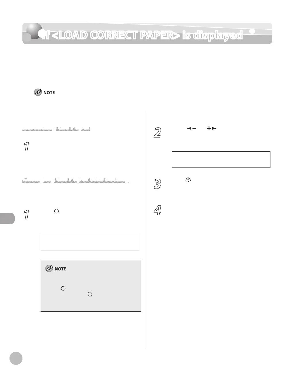 When <LOAD CORRECT PAPER> appears on the display, the size of the paper in the paper