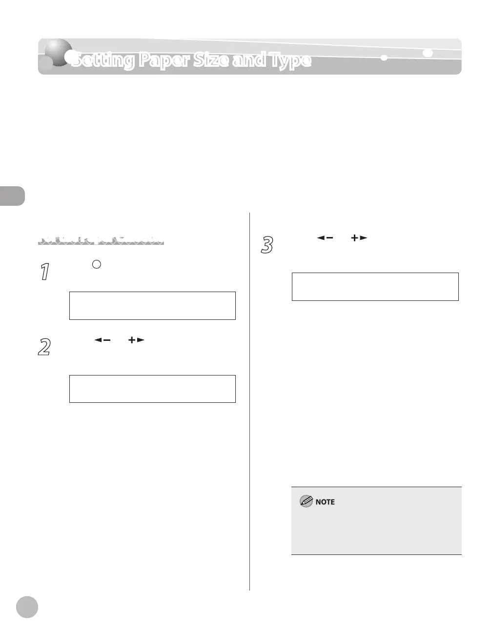 cassette and the tray, follow the procedure in this section to adjust the paper size and type