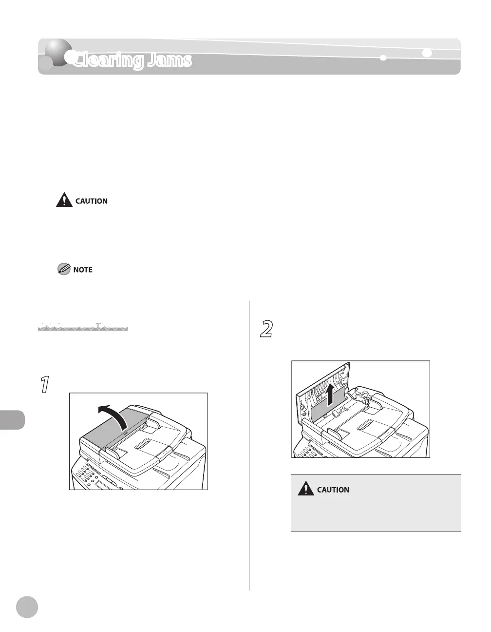 When removing jammed documents or paper, take care not to cut your hands on the edges of the document or paper.
