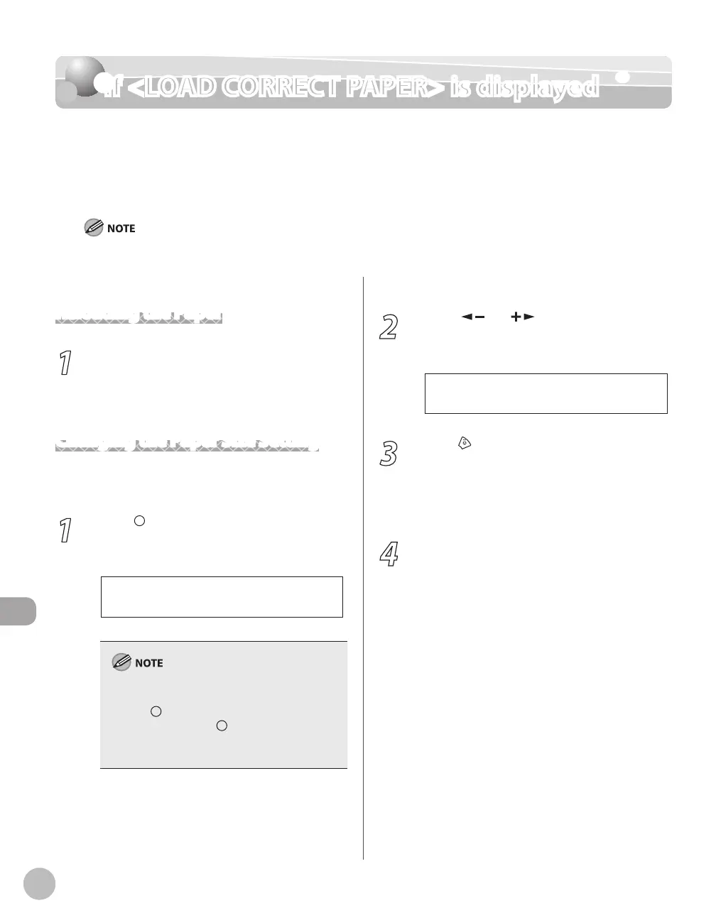 When <LOAD CORRECT PAPER> appears on the display, the size of the paper in the paper