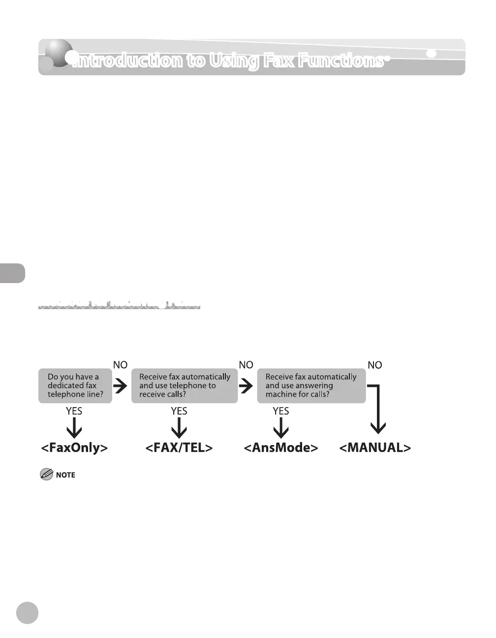 or manually. Follow the chart below to choose the fax receive mode that best suits your needs.