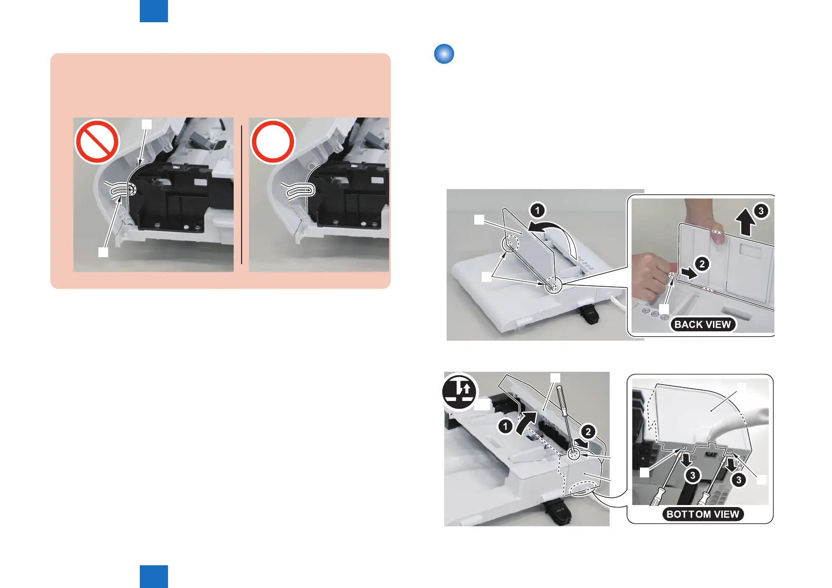 2) Open the SADF upper cover[1] and remove the SADF rear cover[2].
