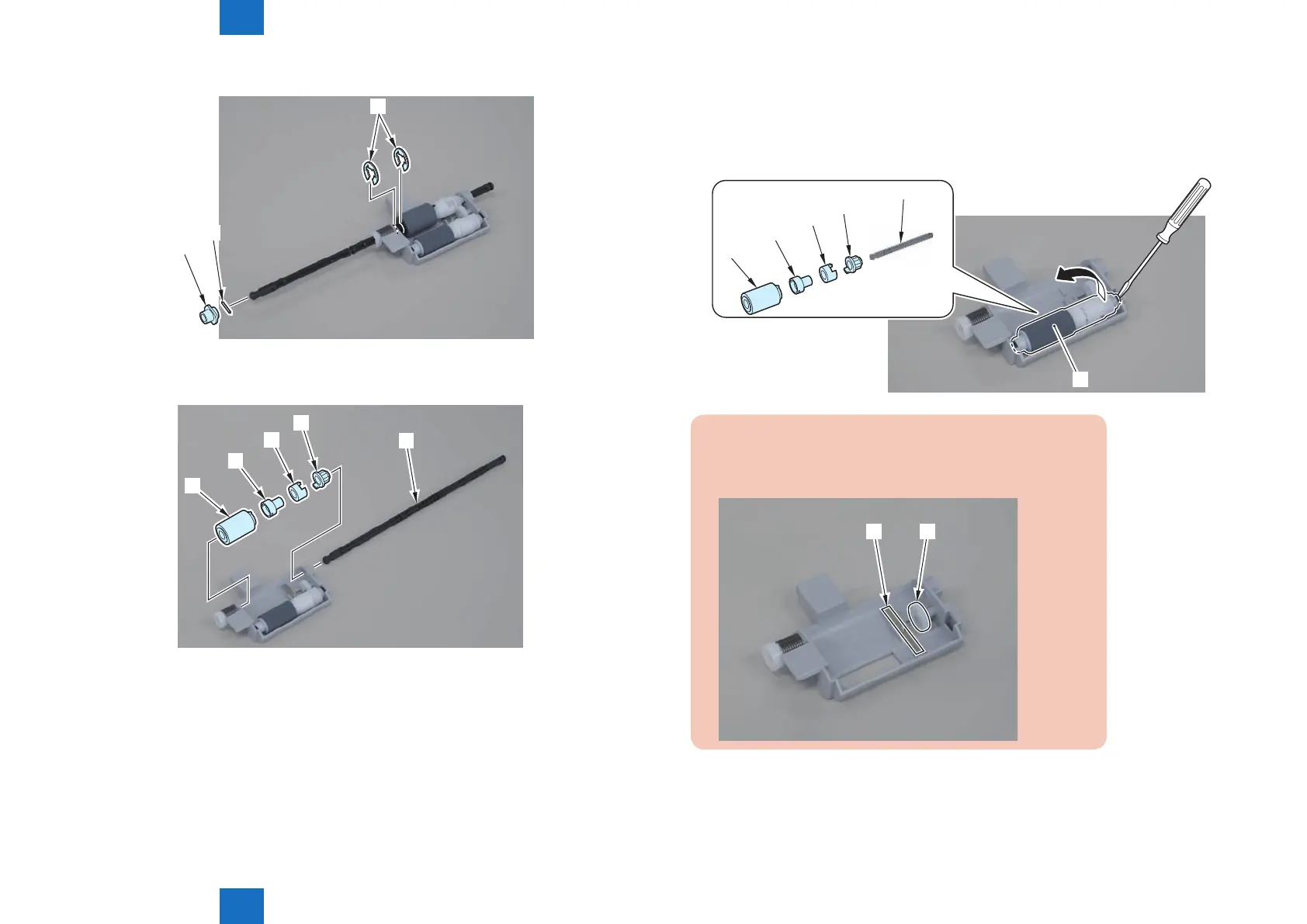 Disassembly/Assembly > Document Exposure/Feeder System > Removing the SADF Pickup Roller 1,2 (MF4870dn/MF4830d) > Procedure