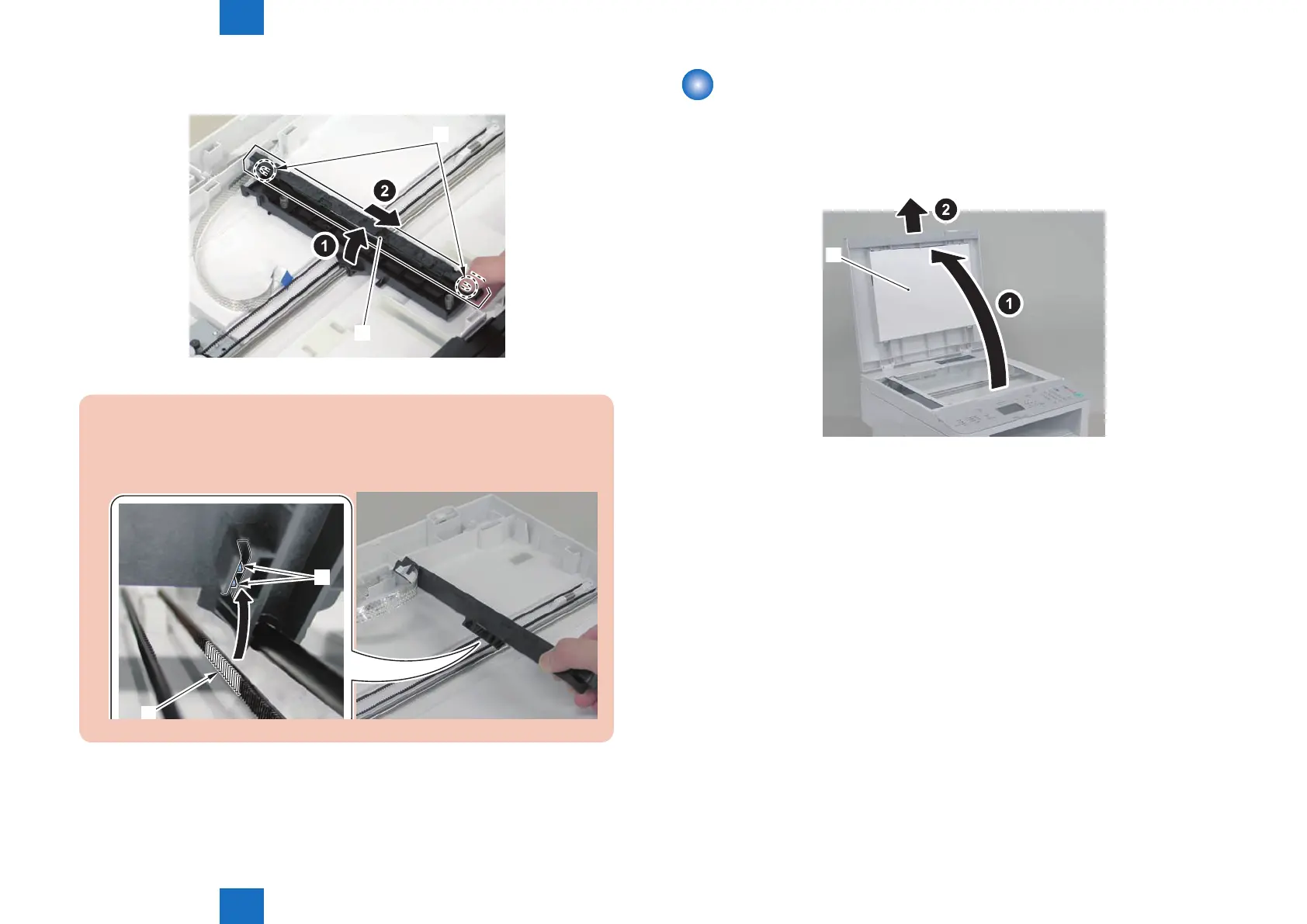 Disassembly/Assembly > Document Exposure/Feeder System > Removing the Copyboard Cover (D530) > Procedure