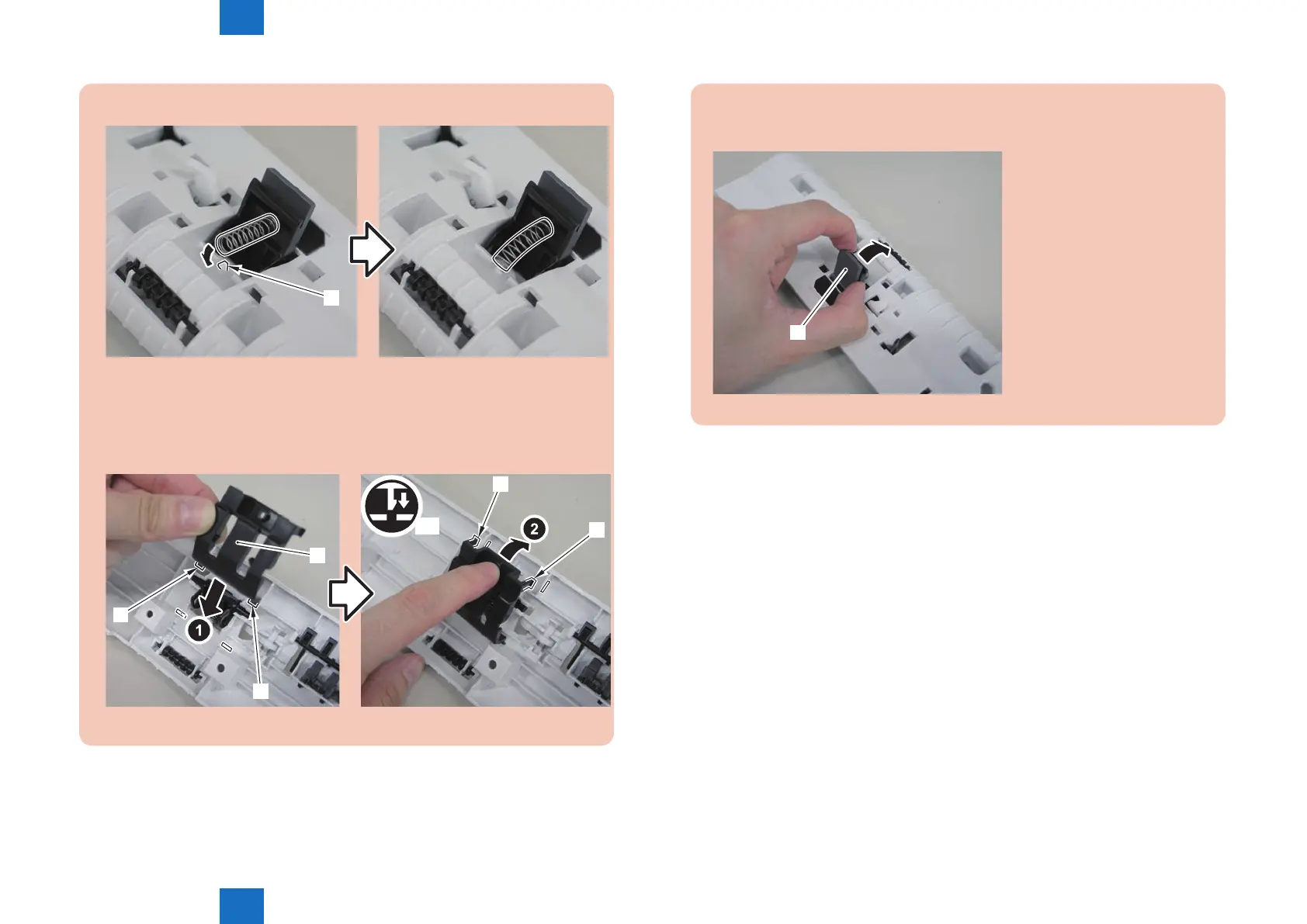 3)Install the spring to the protrusion[1] of the SADF pickup upper cover.
