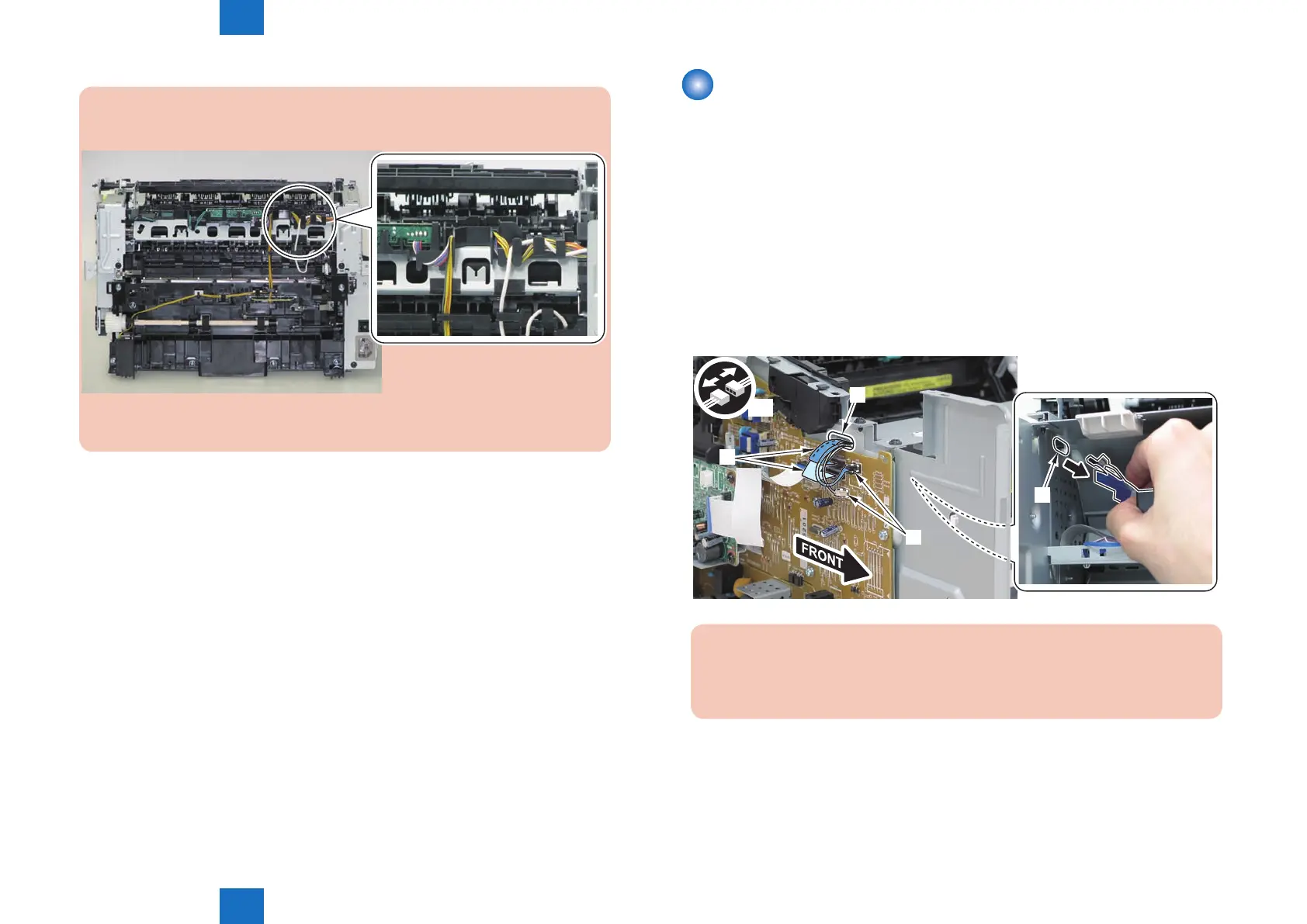 1)Remove the 2 connectors[1] and 2 at cables[2], and put them through the hole[A] of the