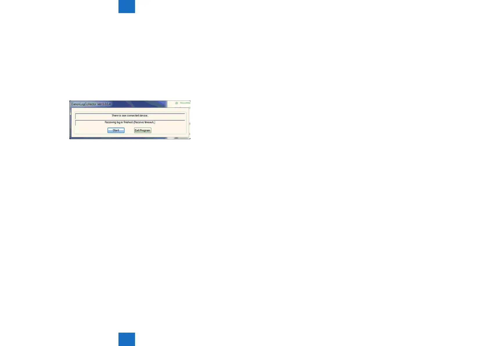 CanonLogCollector screen. The size of the log le becomes approx. 1 KB. Collect the log