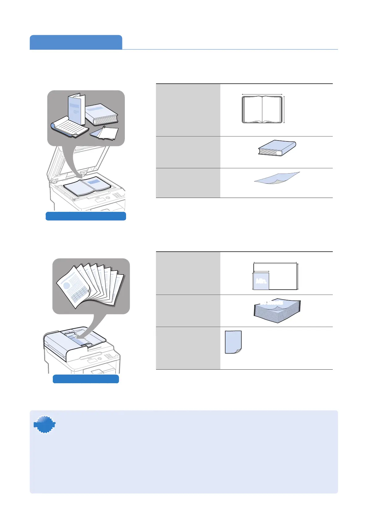 •To prevent paper jams in the feeder, place a document on the platen glass when using the following types of