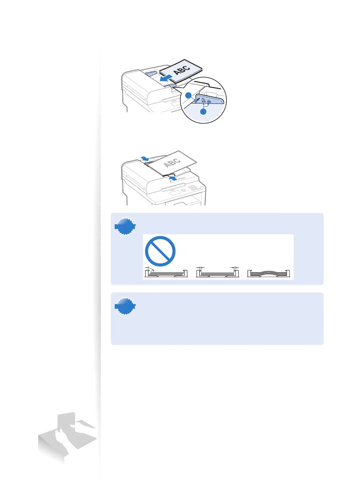 • Make sure that the paper stack does not exceed the load limit marks (B).