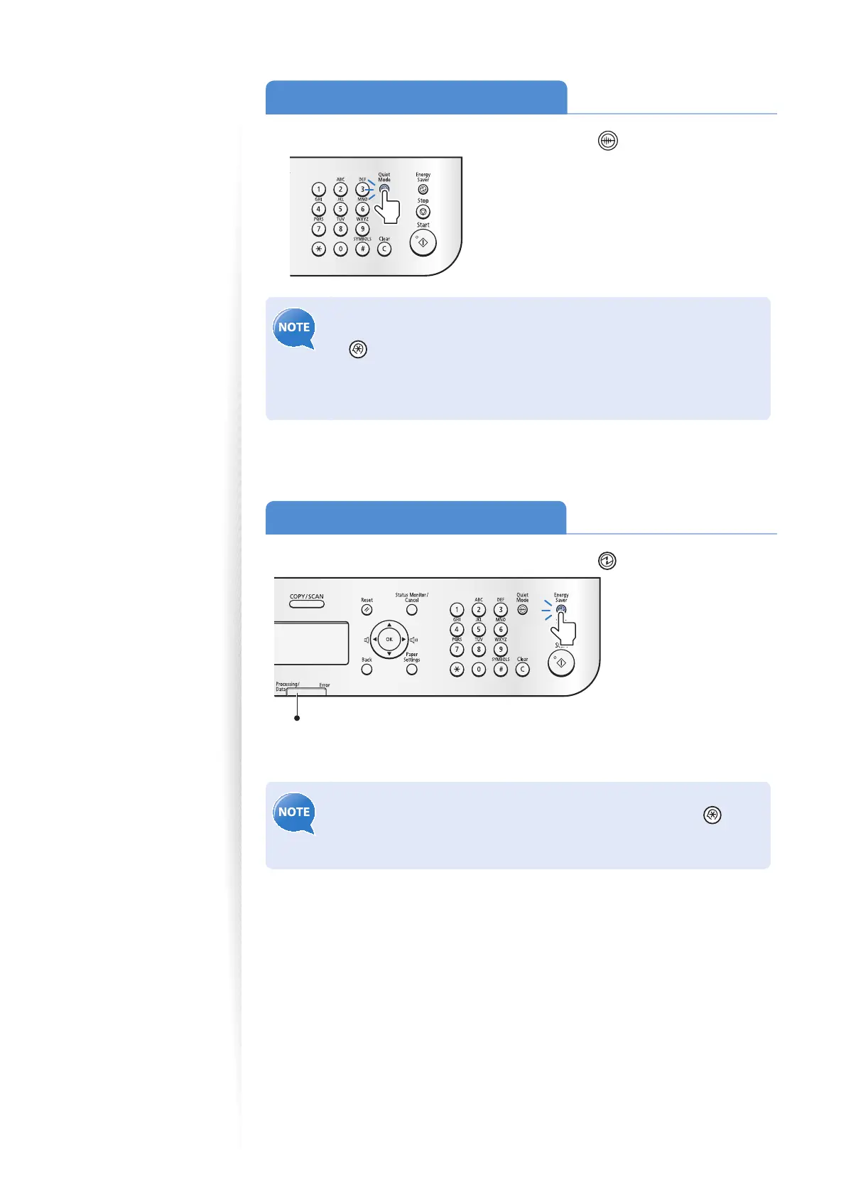 • The Quiet mode only reduces noise that occurs while the machine is