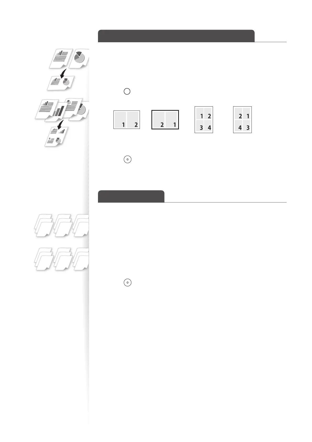 You can combine multiple pages (two or four pages) onto one copy sheet.