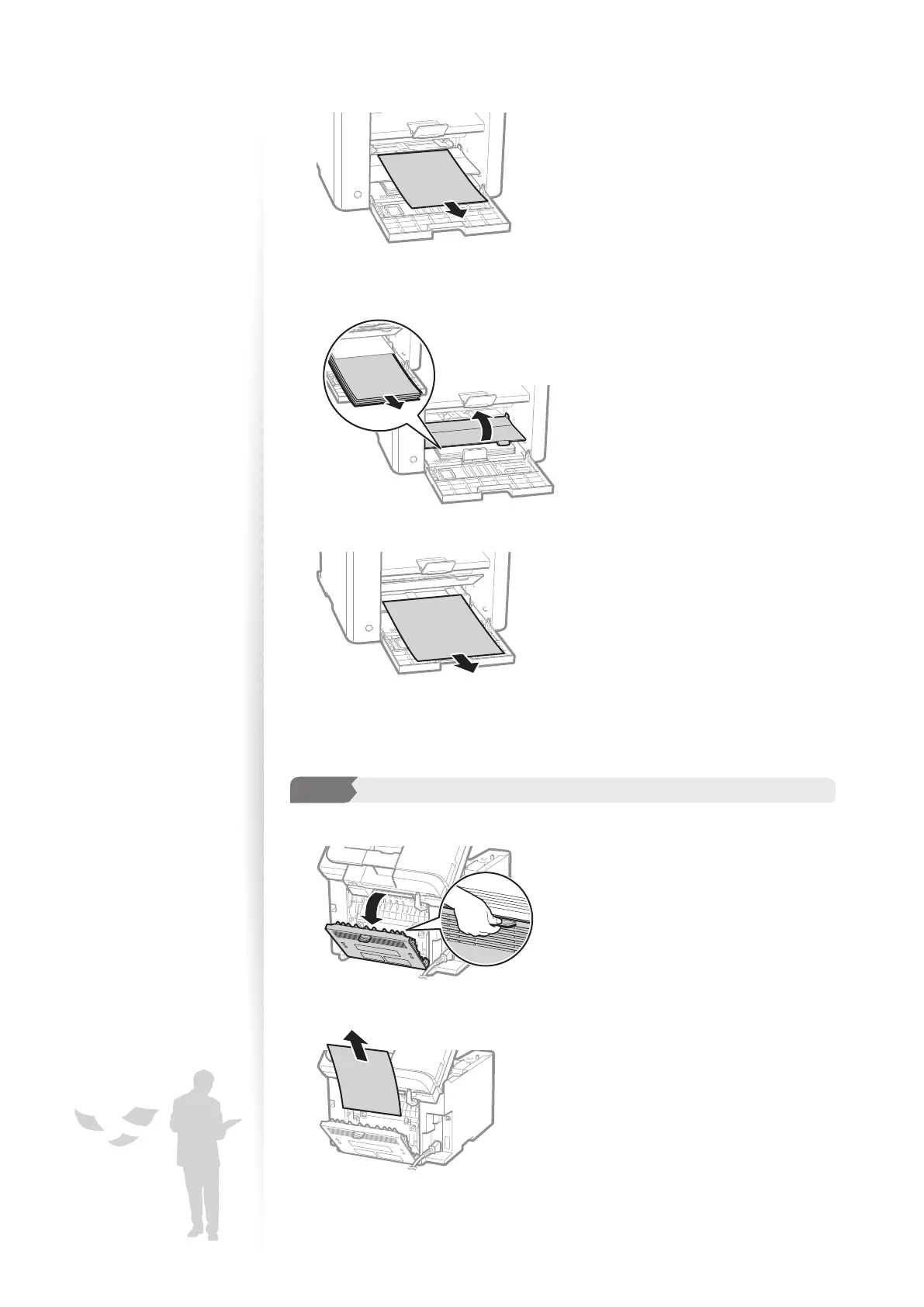 Check and remove the jammed paper in the rear cover.
