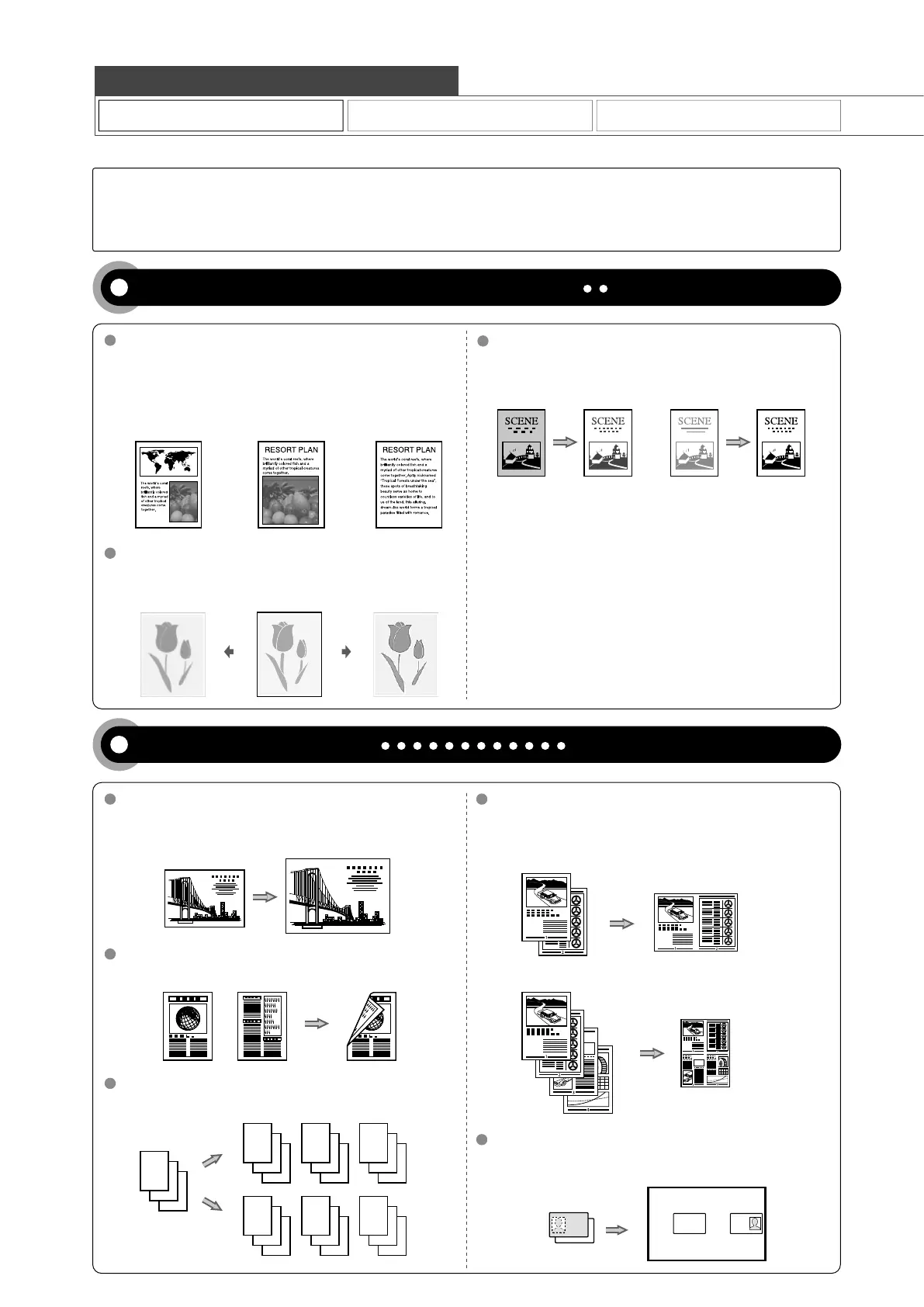 can enlarge or reduce copies as well as copy multiple documents onto one sheet. Additionally, you can adjust the