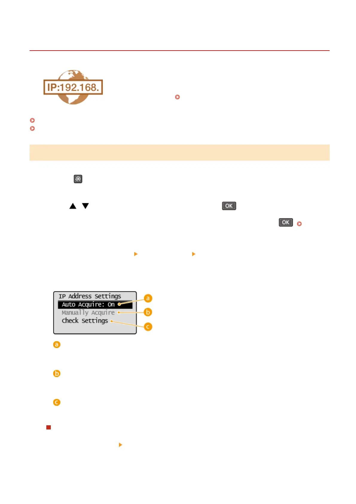 Select <TCP/IP Settings> <IPv4 Settings> <IP Address Settings>.