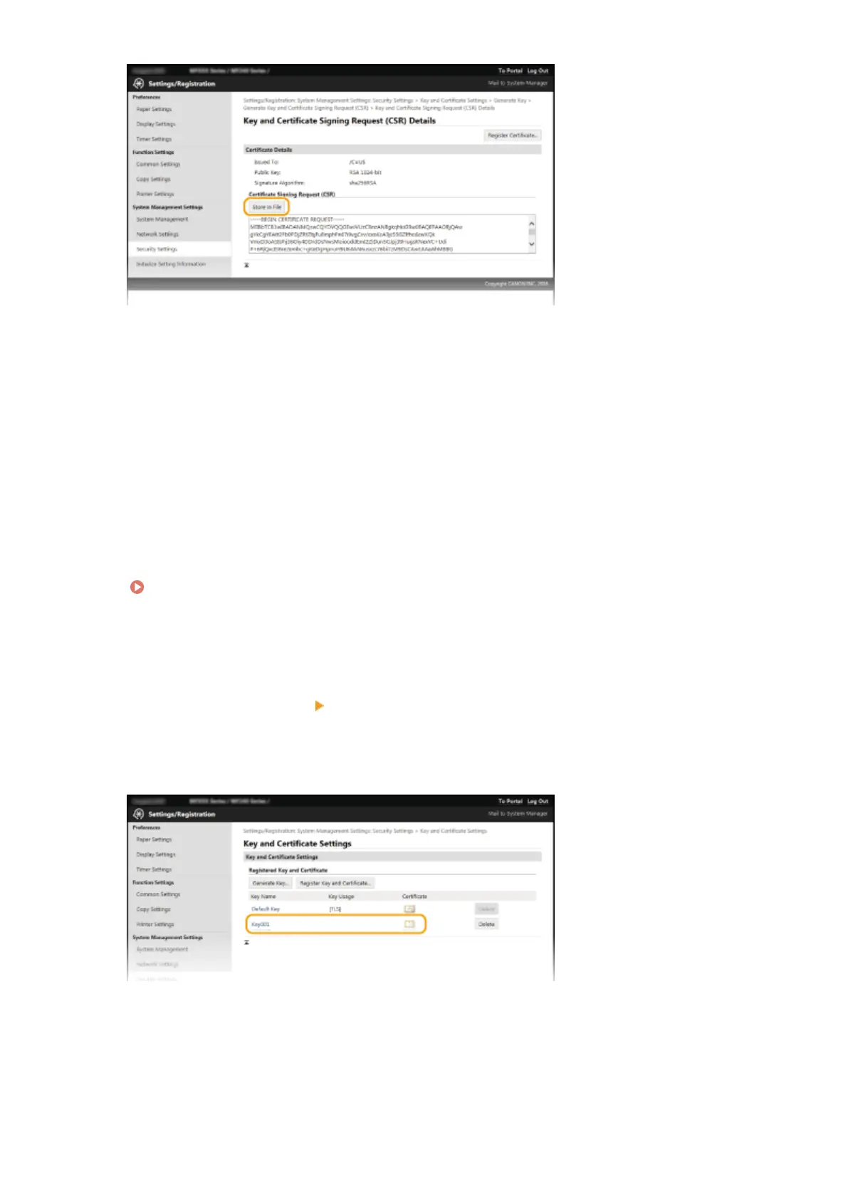 Click [Security Settings] [Key and Certicate Settings].