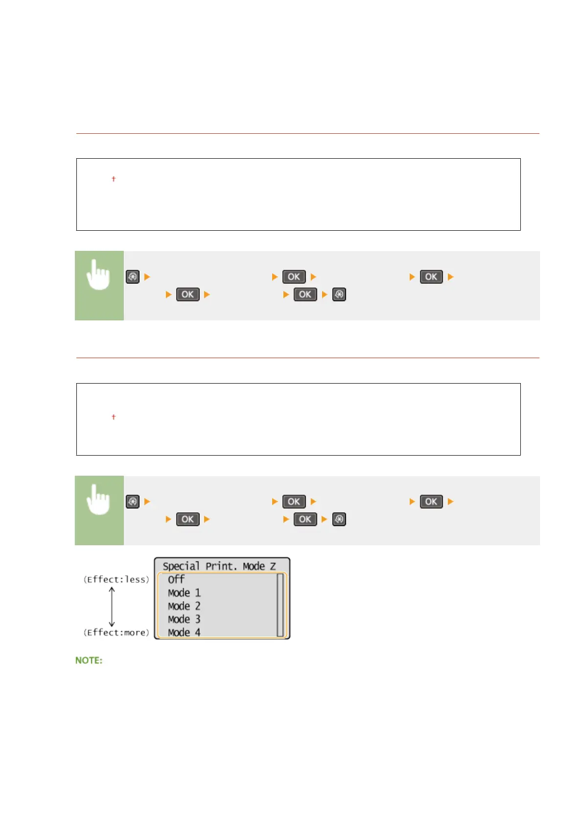 By specifying <Off> or <Mode 1>, streaks may adhere to the print paper. By specifying <Mode 3> or <Mode 4>,