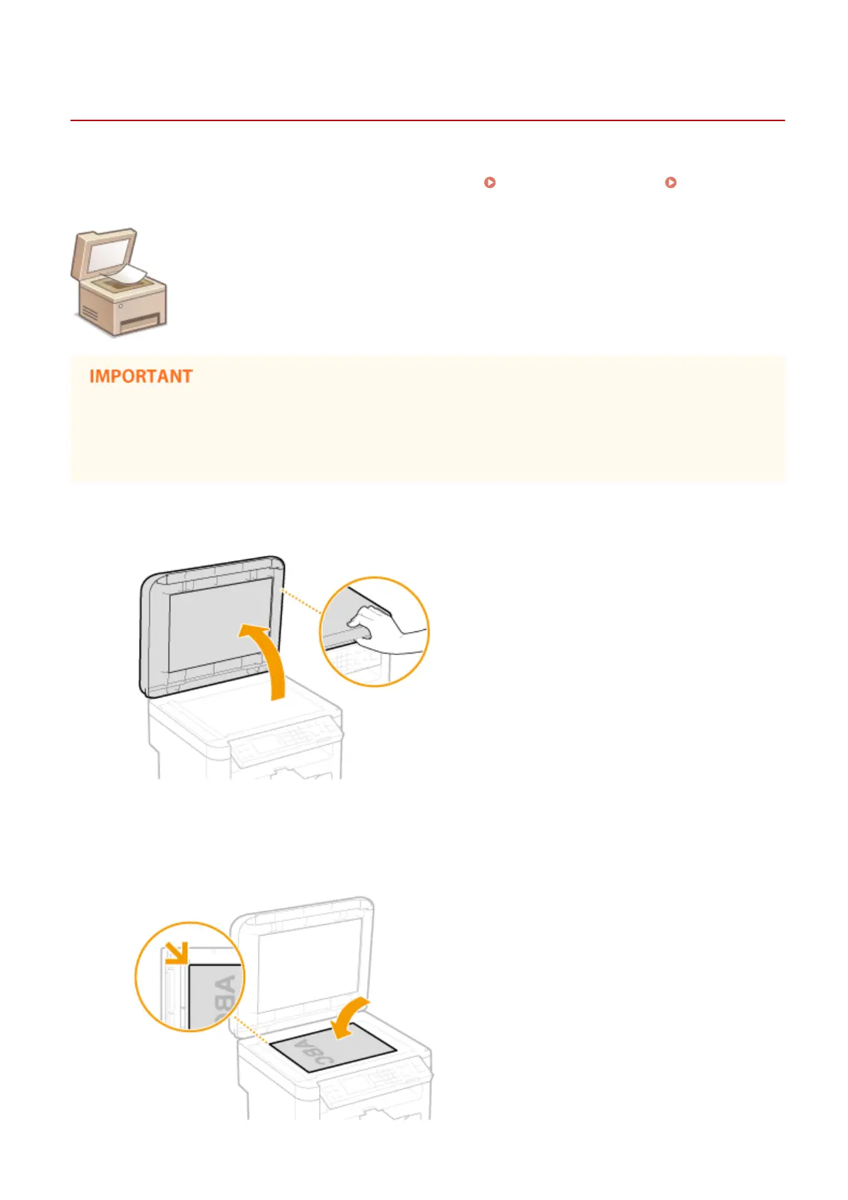 ● Align the corner of the document with the top-left corner of the platen glass.
