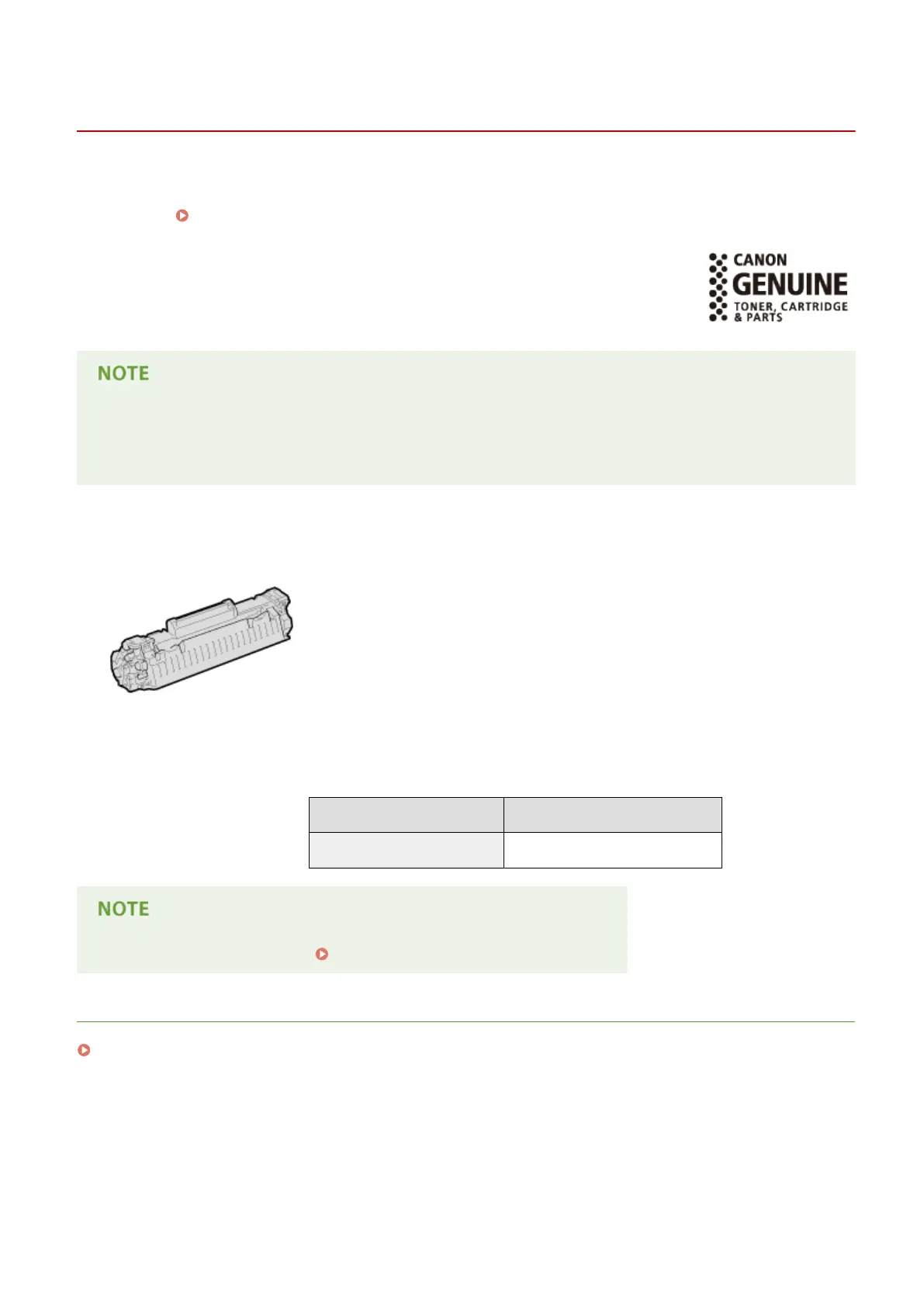 For optimum print quality, using Canon genuine Toner, Cartridge and Parts is