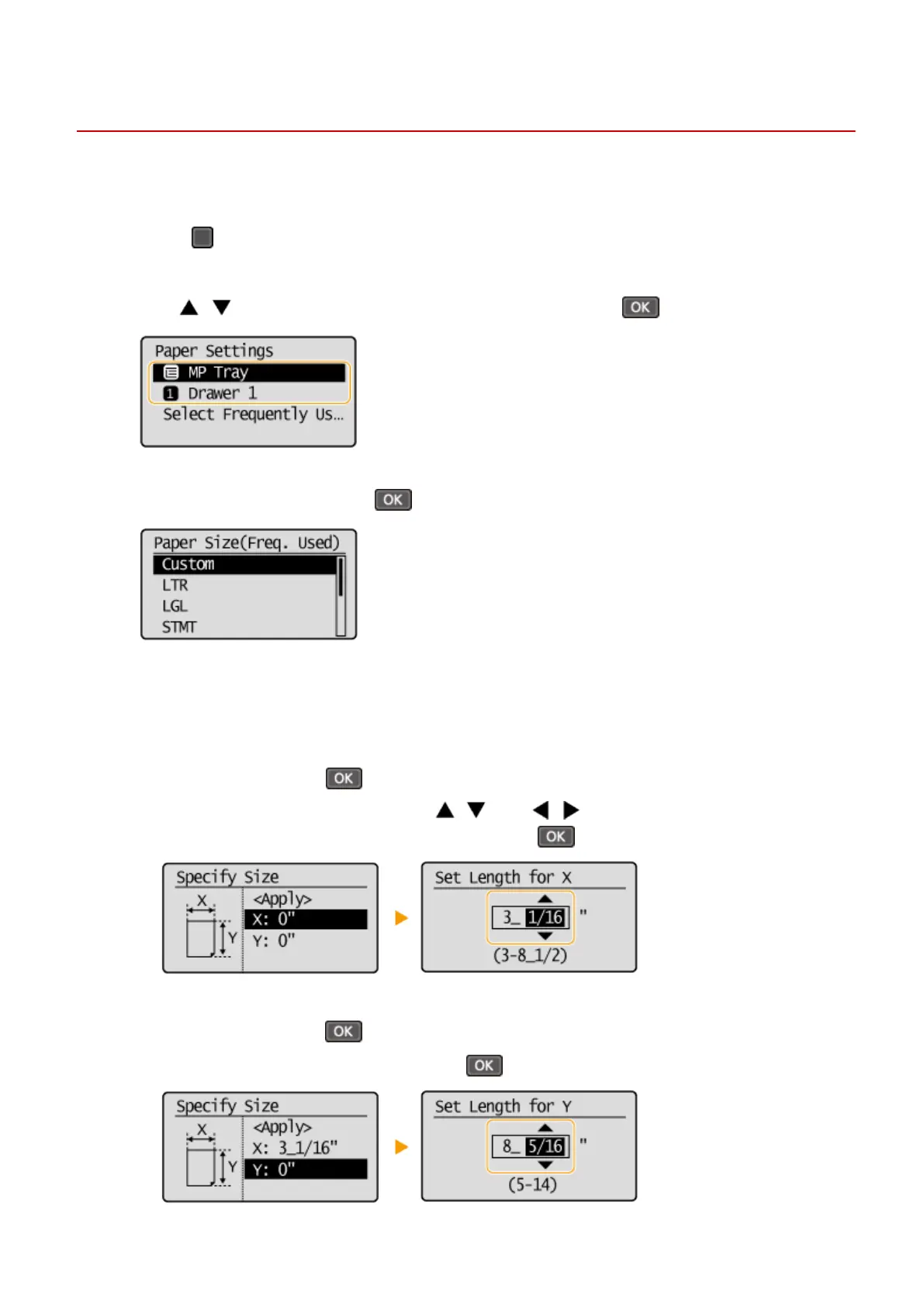 You can register one frequently used custom paper size each for the paper drawer and manual feed slot.