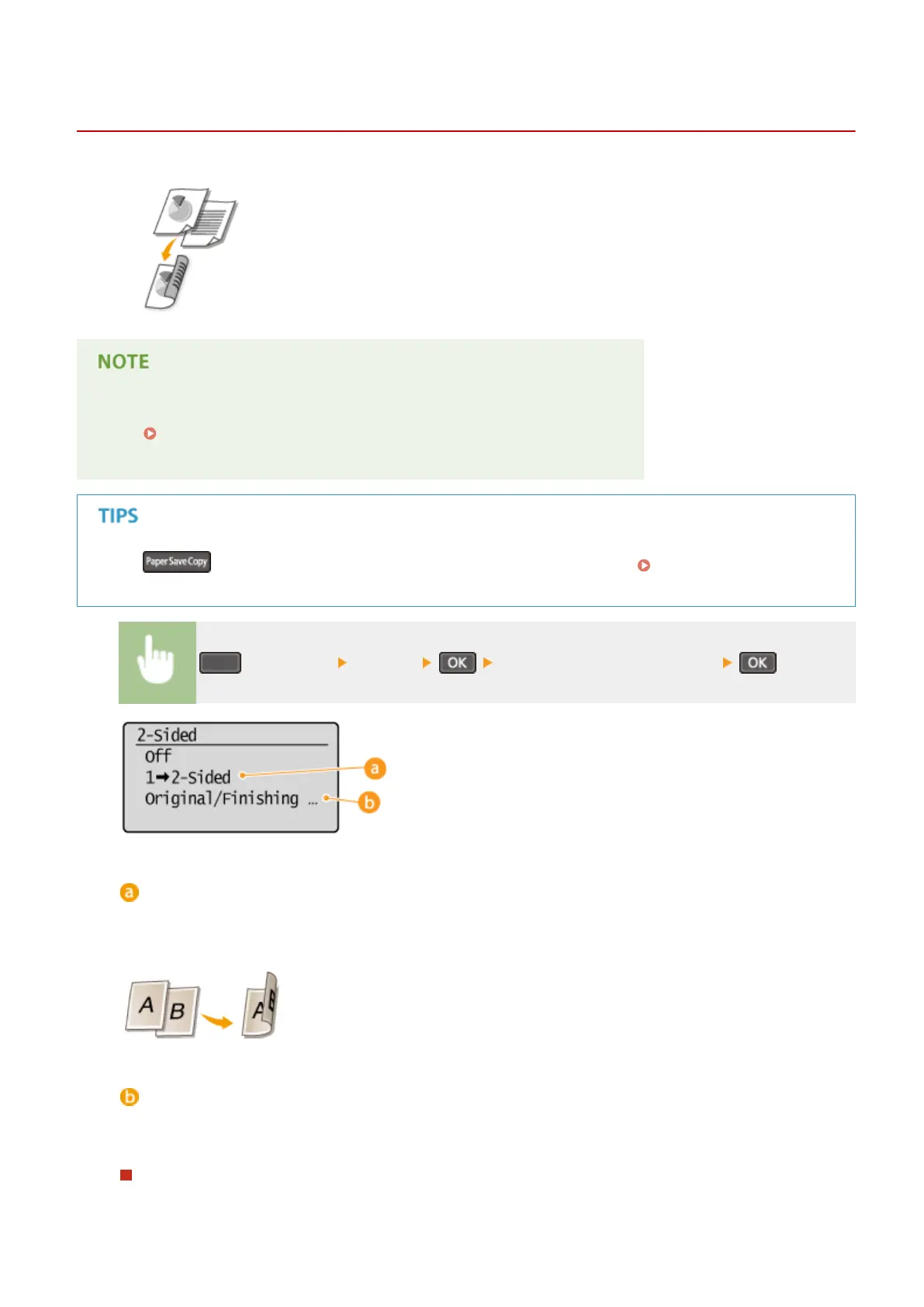 Using enables you to combine 2-sided copying and <2 on 1>/<4 on 1>: Using the [Paper Save