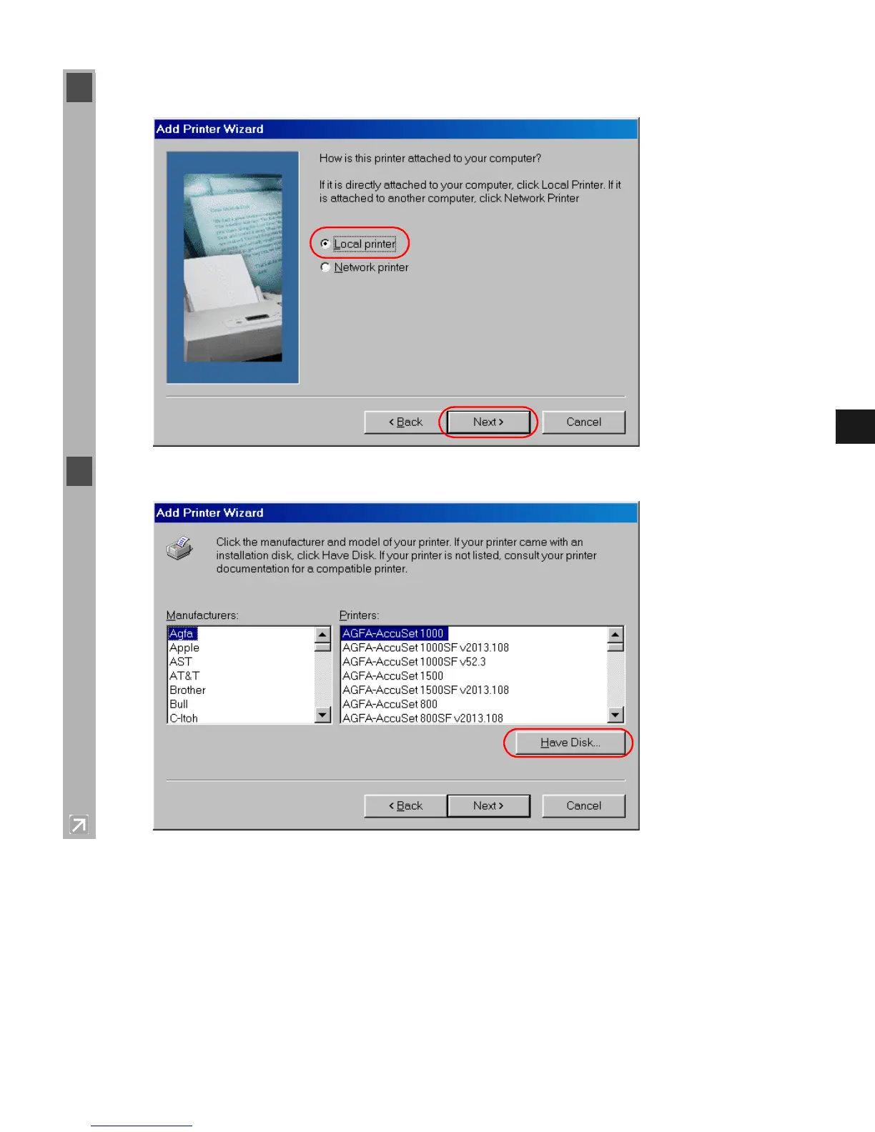 4 The Wizard displays a list of available printers. Click Have Disk….