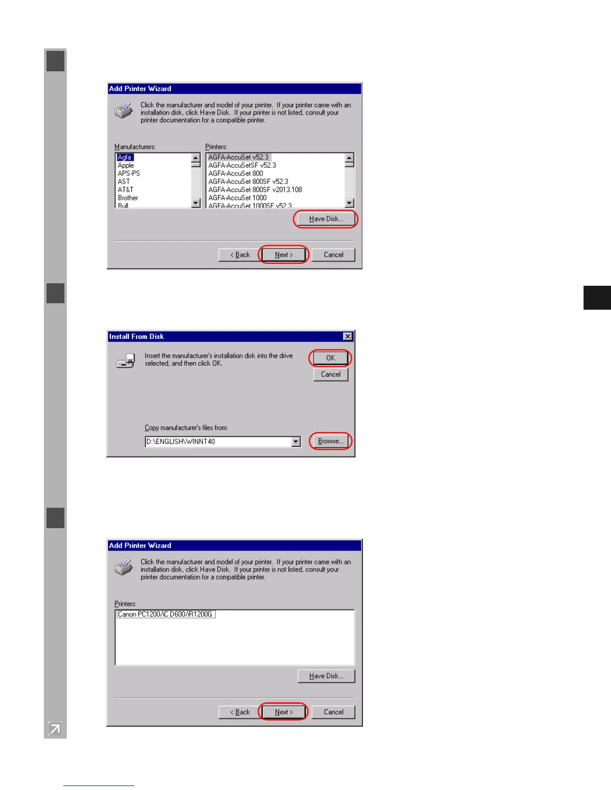 6 Click Have Disk… in the Manufacturers/Printers dialog box.