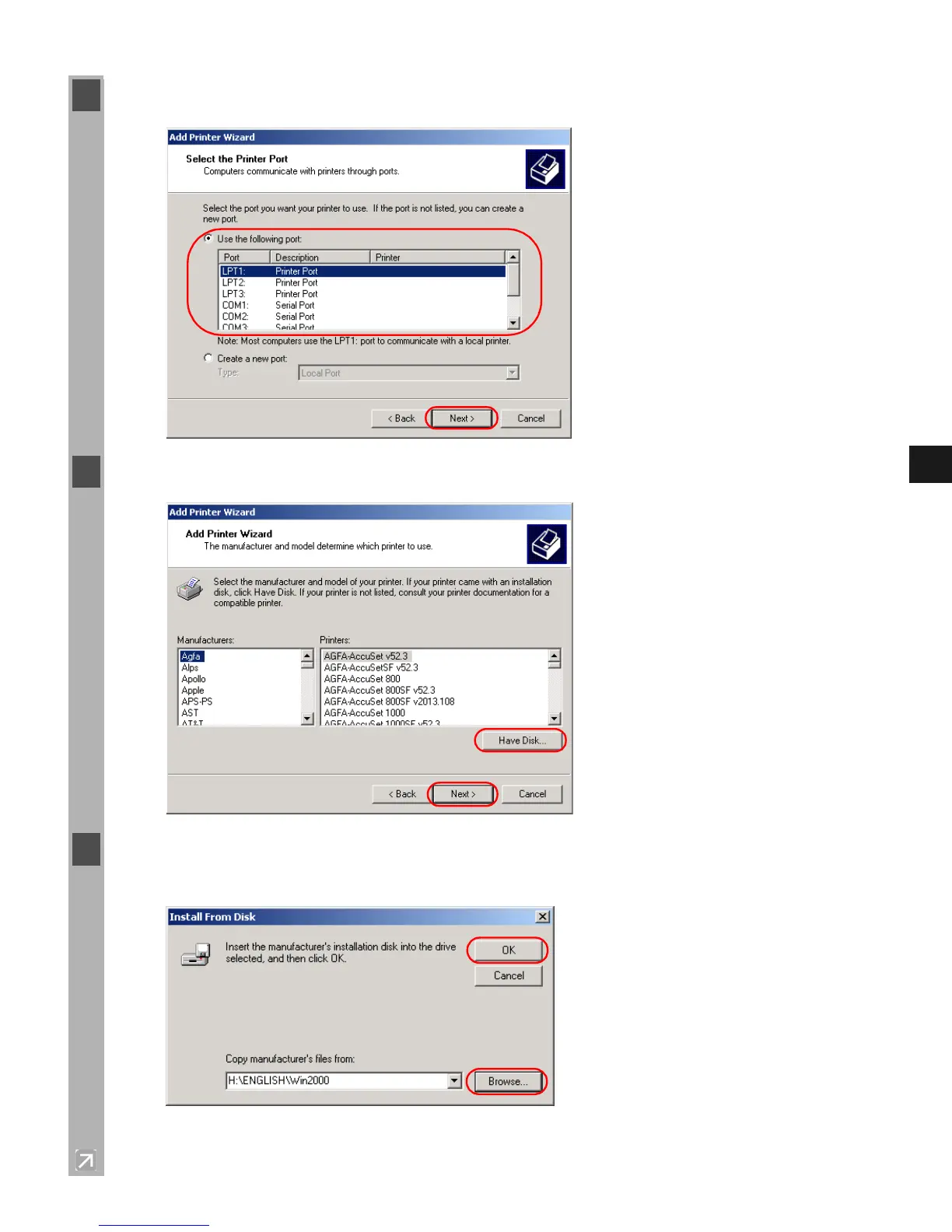 6 Click Have Disk… in the Manufacturers/Printers dialog box.