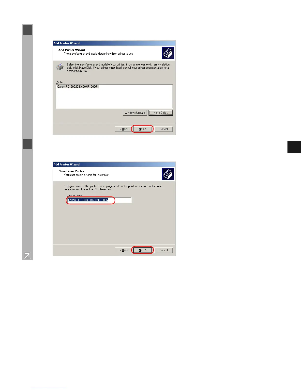 9 Click Next > to accept the default printer name, or enter the name you wish to use, then click