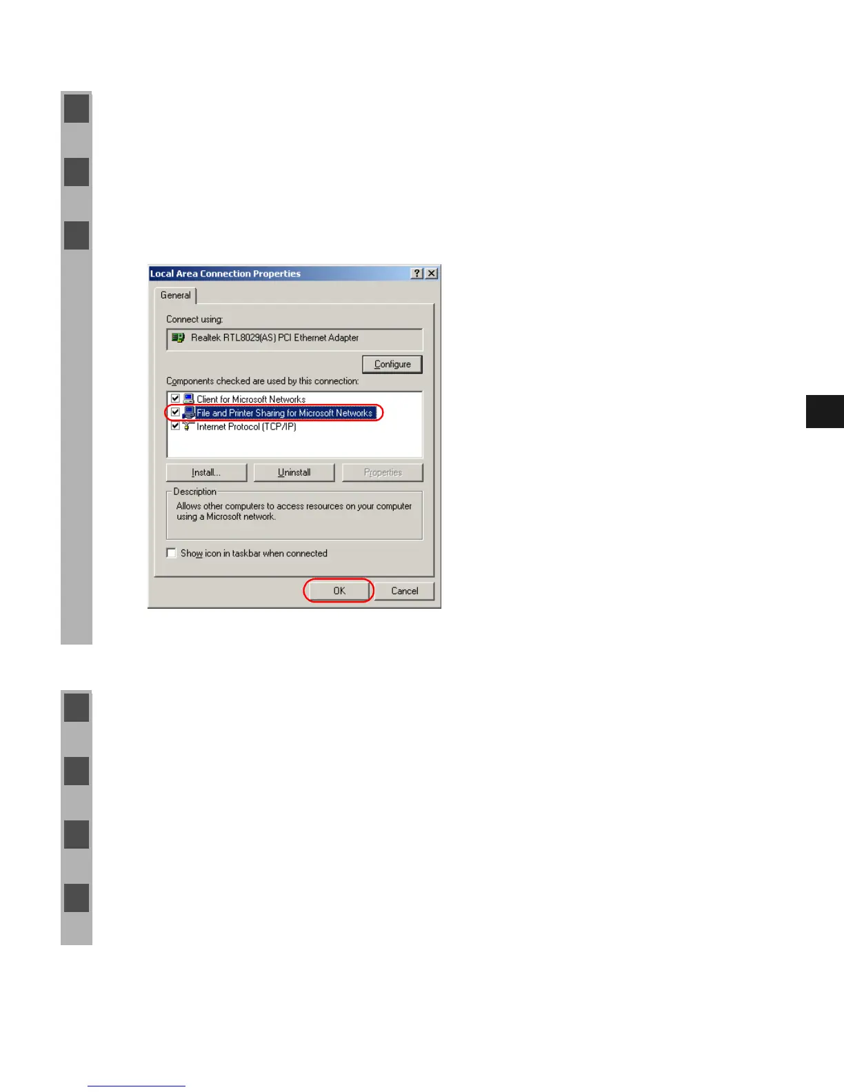 3 Select File and Printer Sharing for Microsoft Networks, then click OK.