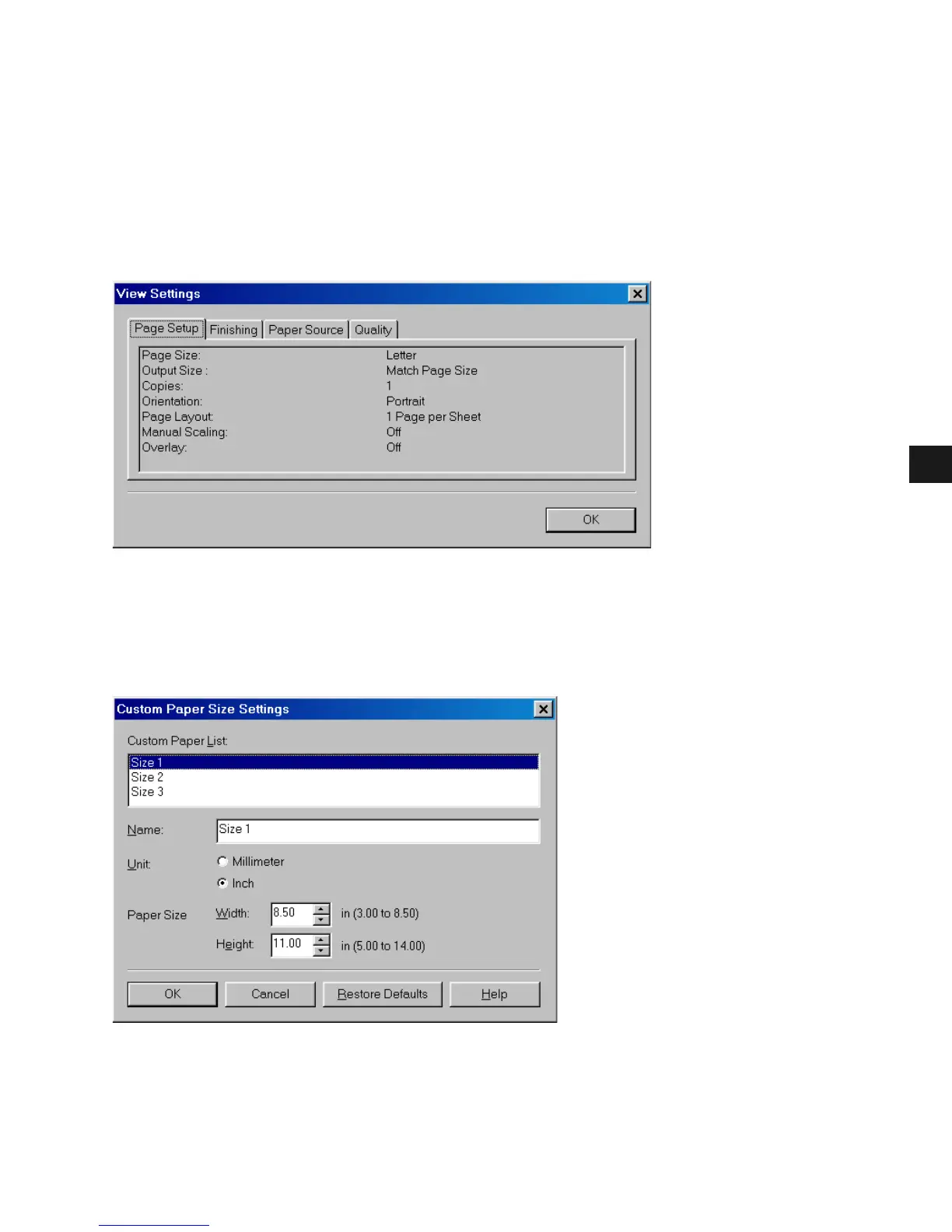 Setup, Finishing, Paper Source and Quality tabs. Click on the tabs in the View Settings