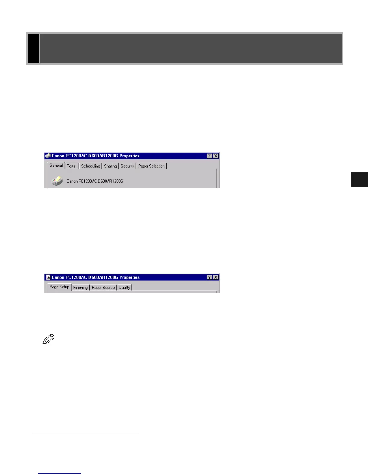 The CAPT for Windows NT 4.0/2000/XP has two main dialog boxes: the Printer Properties