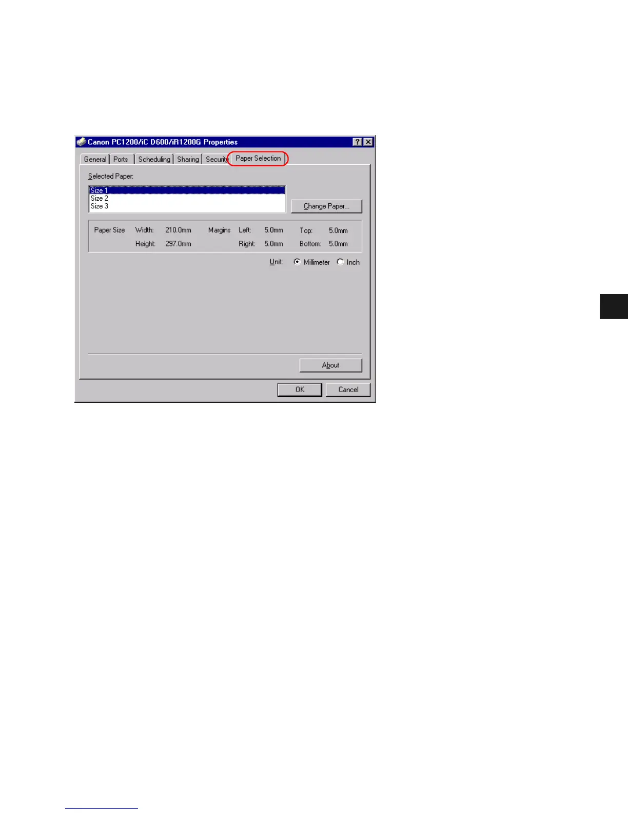 a size in the list and then click OK, the size information is copied to the selected paper in the