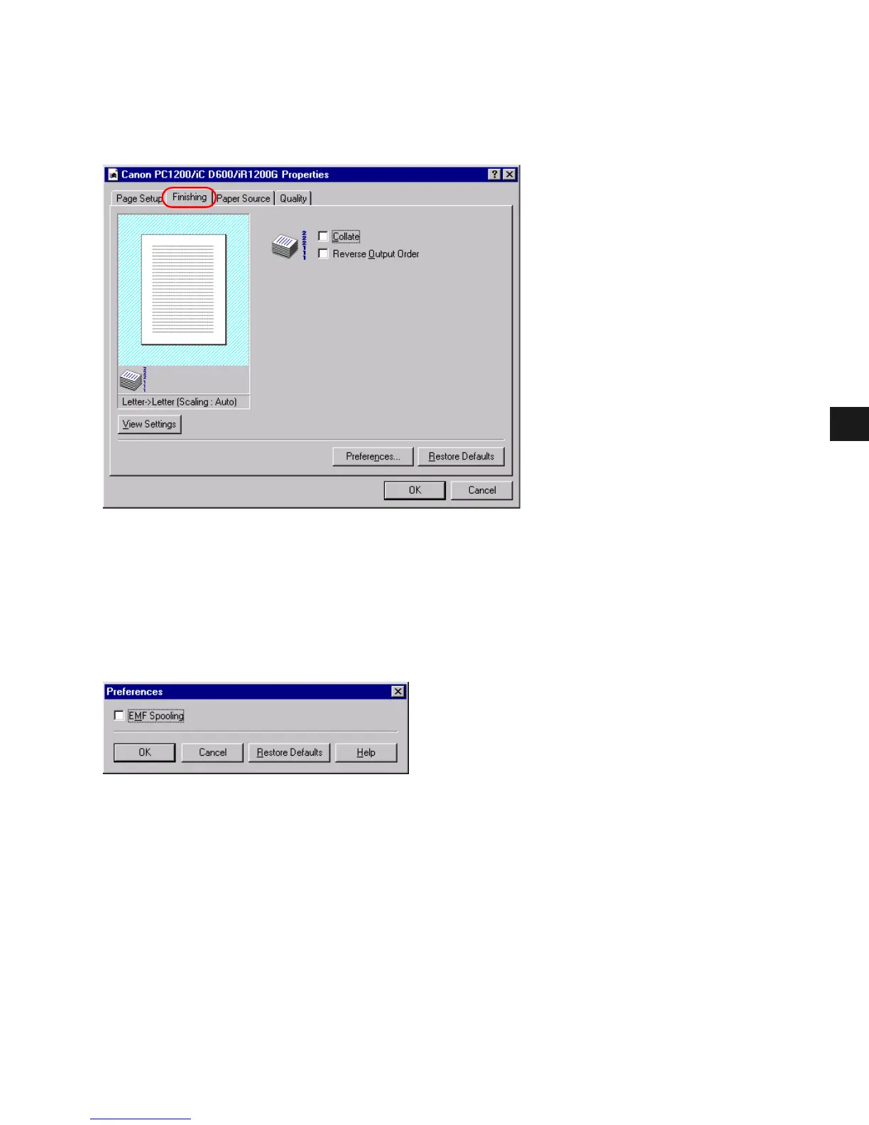 Preferences... on the Finishing tab window opens the Preferences dialog box. The check box