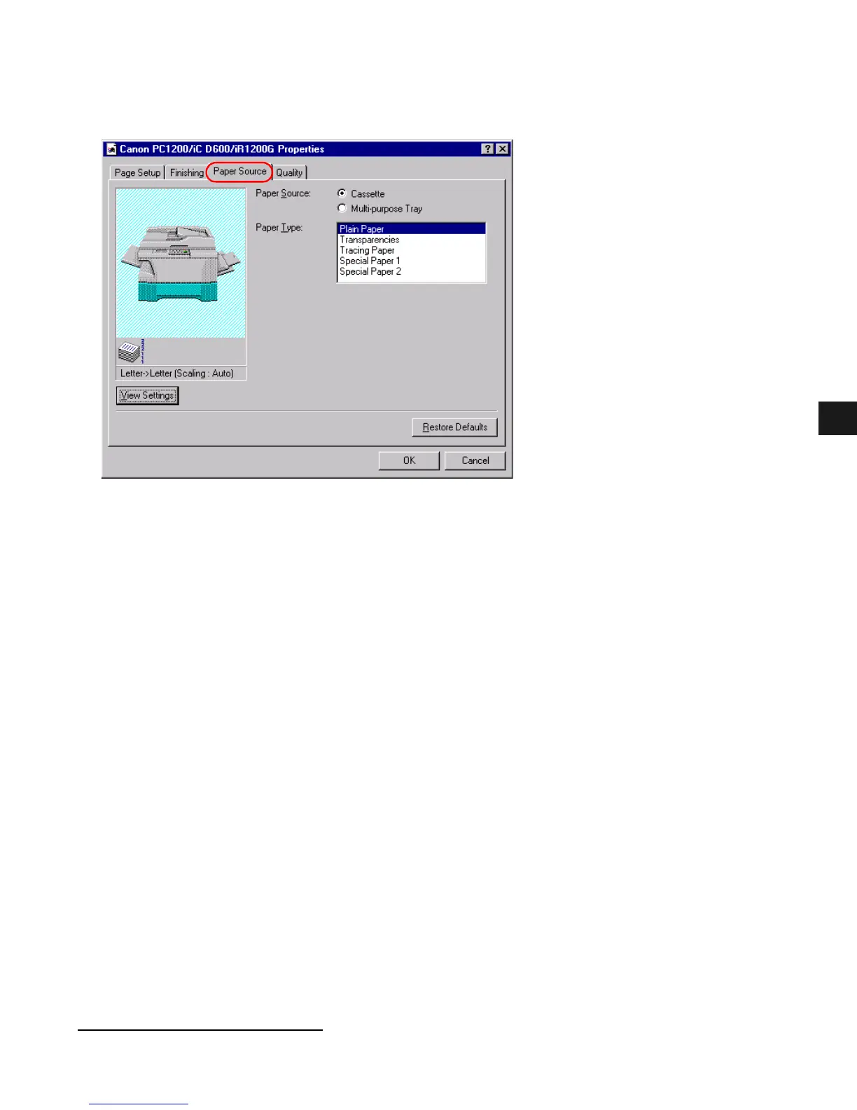 *When Paper Source is set to Cassette, please do not select paper types other than Plain Paper.