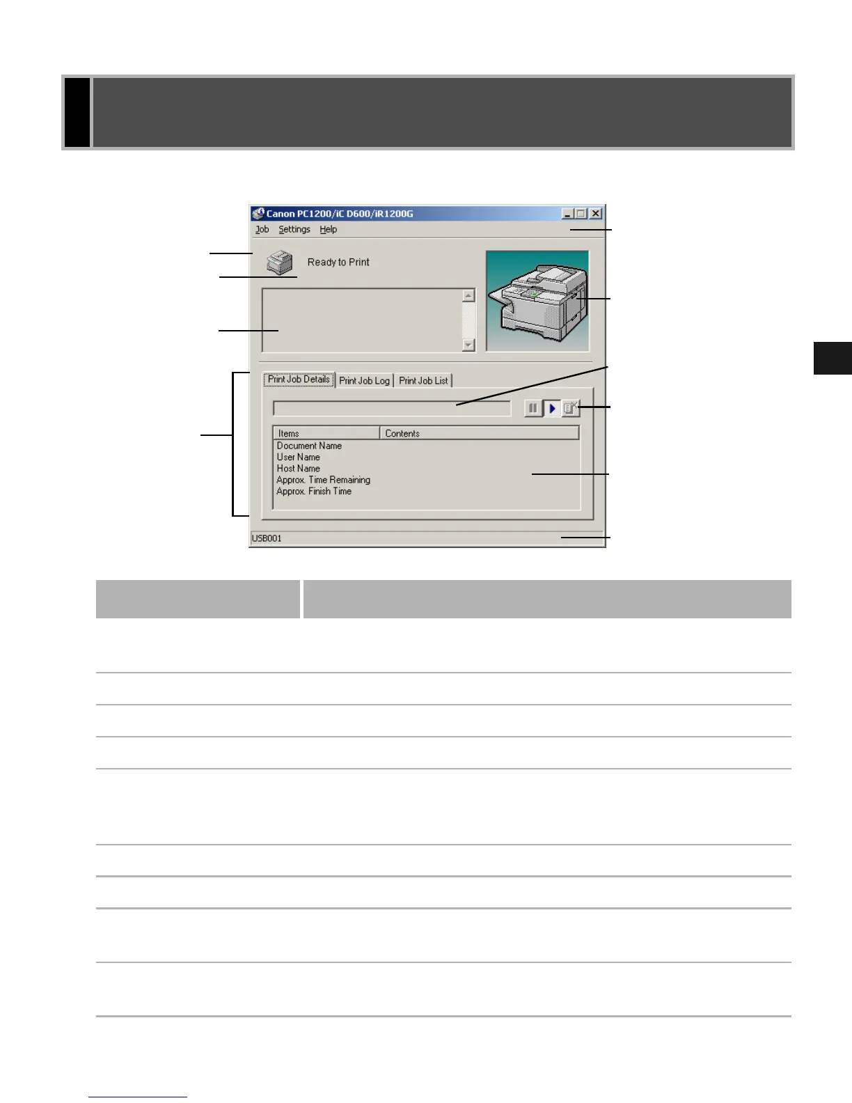 The Status Window is a program used to display the status of jobs and perform printer operations.