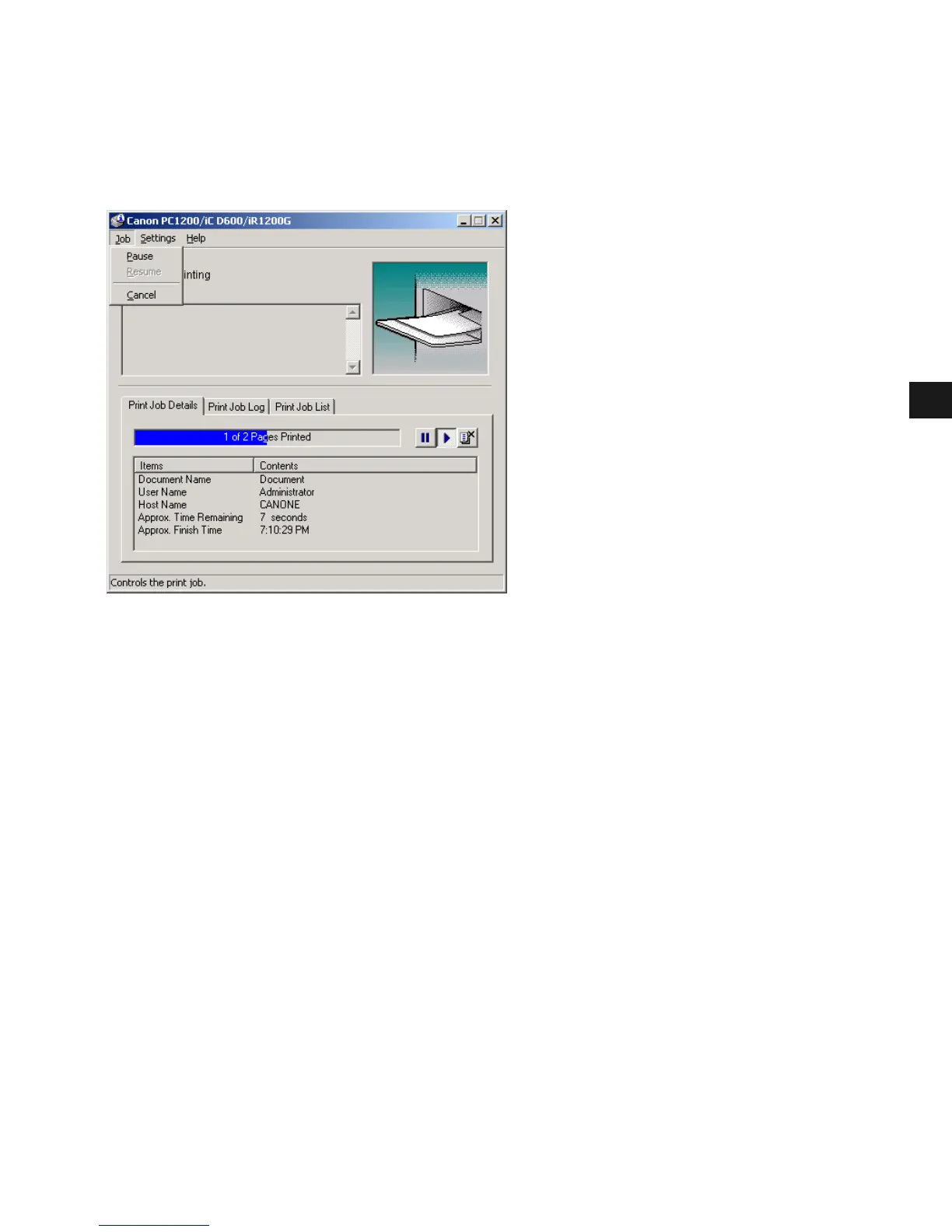 You can select the Job menu from the menu bar of the Canon PC1200/iC D600/iR1200G