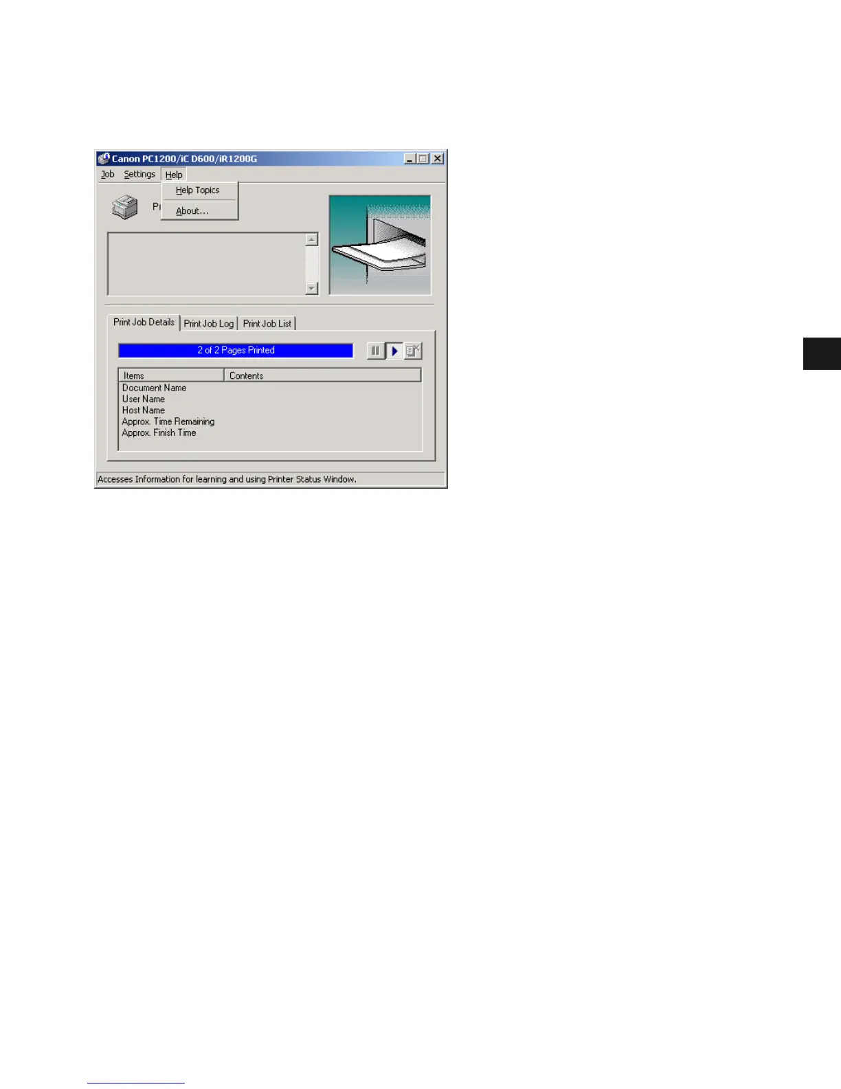 You can select the Help menu from the menu bar of the Canon PC1200/iC D600/iR1200G