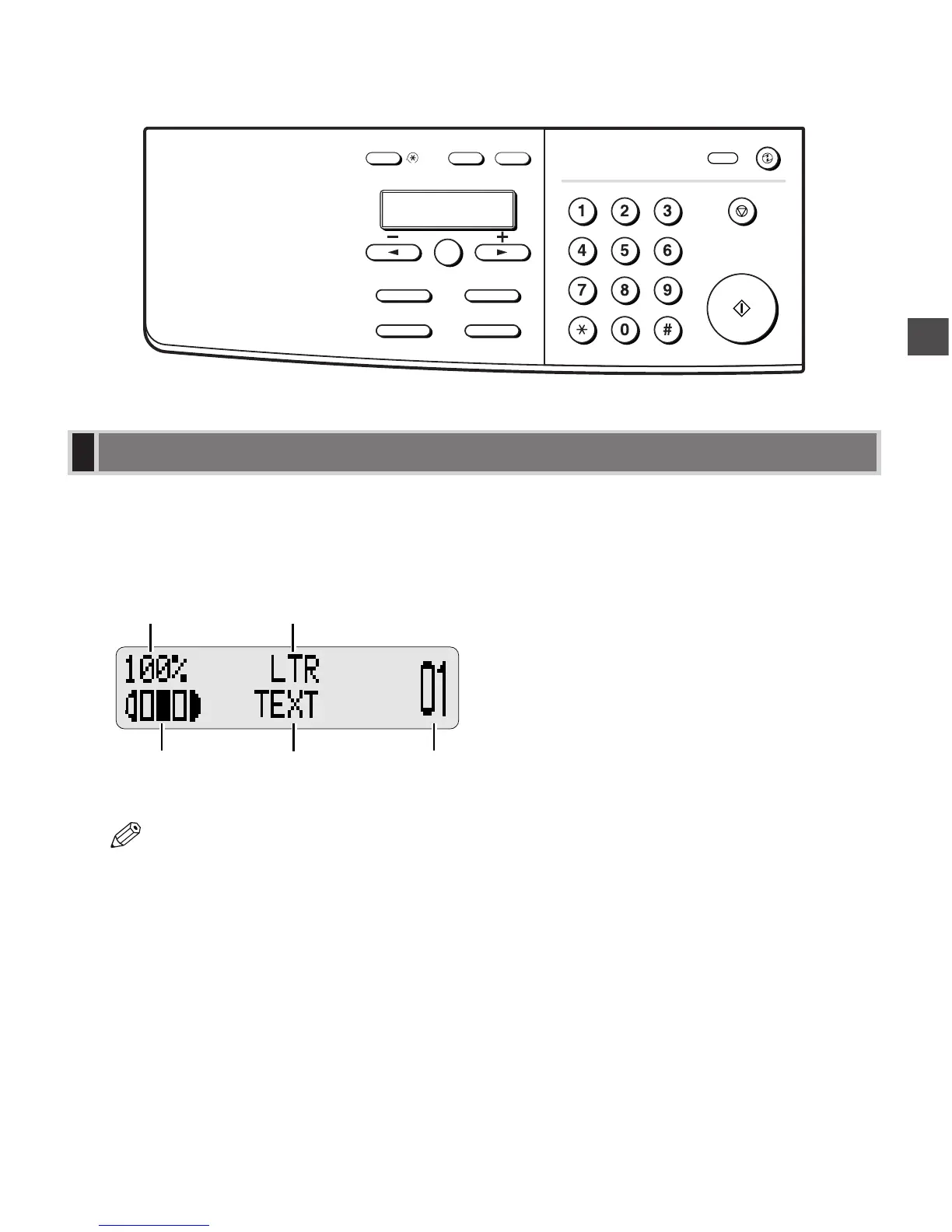 The standby display differs depending on which mode is selected. The standby display in Copy Mode is as
