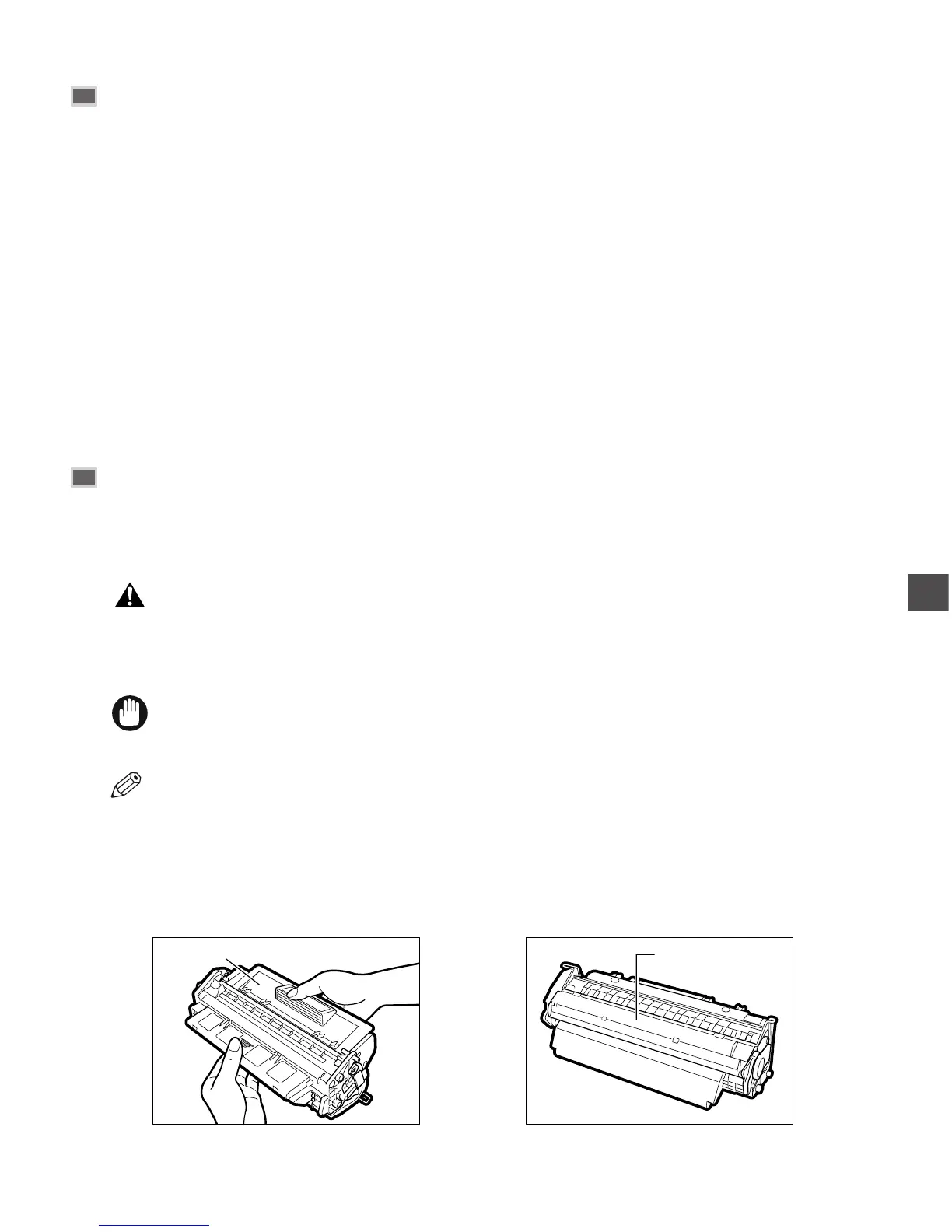 • Do not throw cartridge into open flames, as this may cause the toner to ignite and result in burns