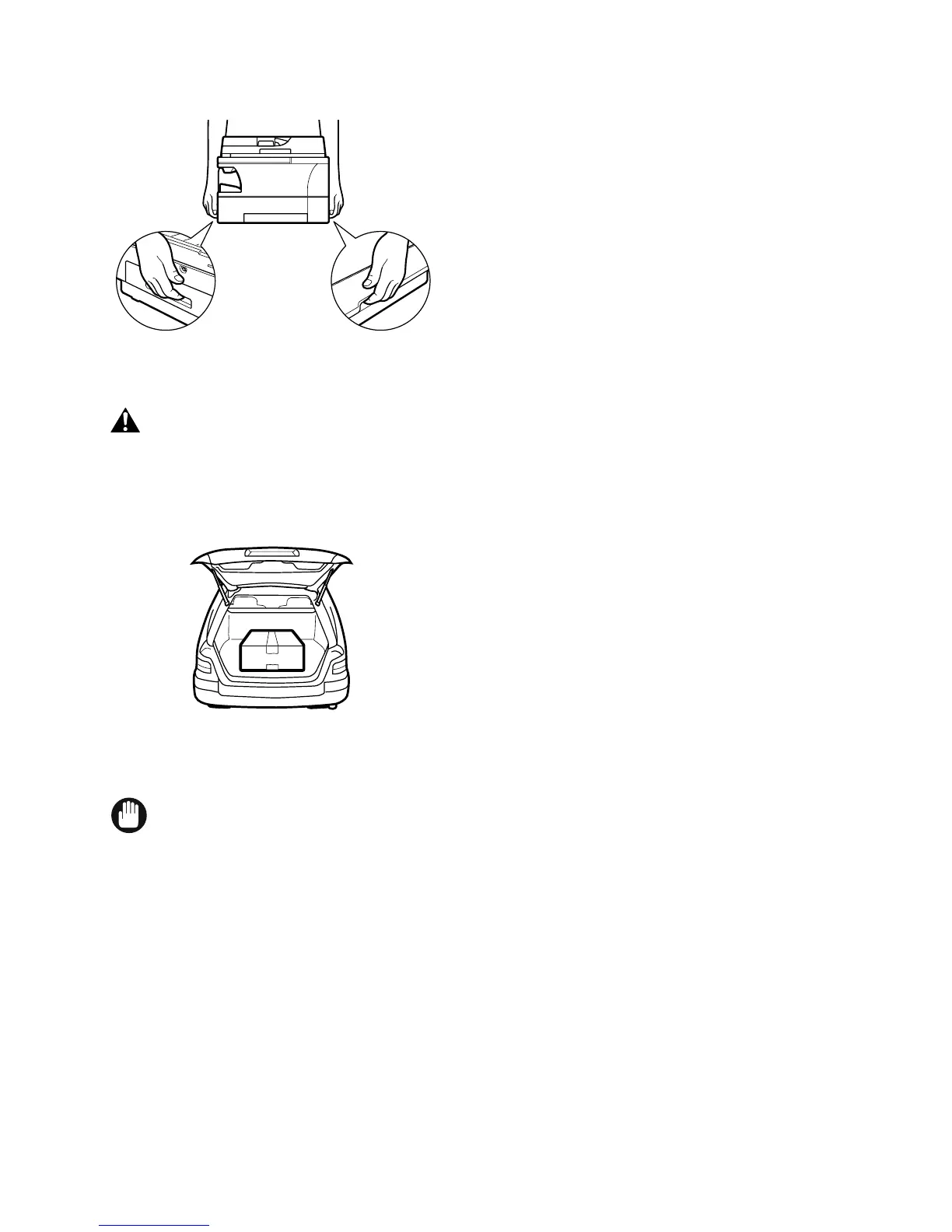 Grip the handles on the sides of the machine and lift up the machine, as shown in the illustration above.