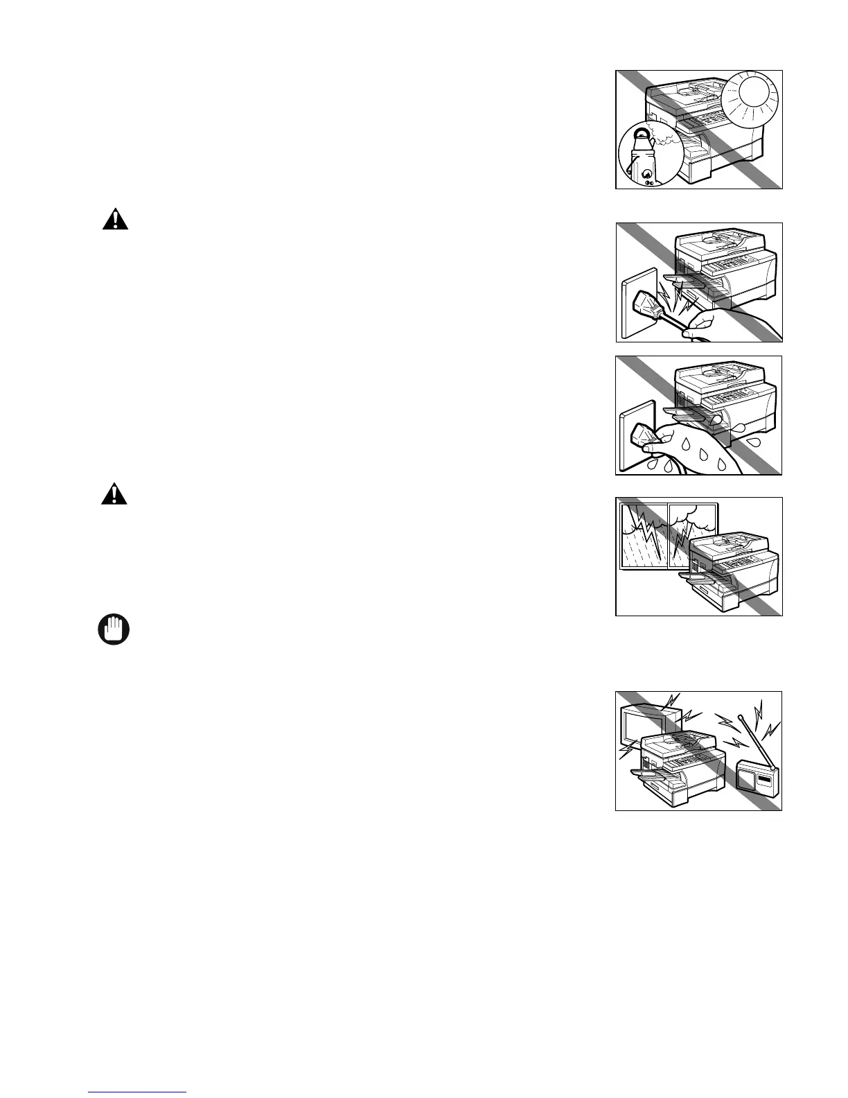• During electrical storms, disconnect the telephone line and the