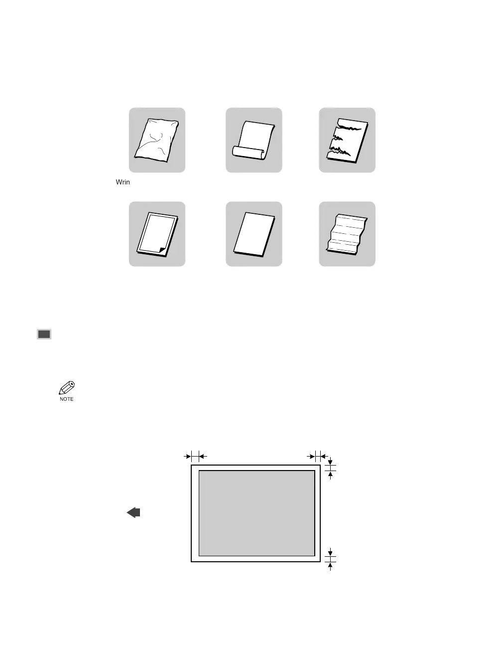 The shaded area in the illustration below shows the scanned area of a document. Make sure the text and graphics